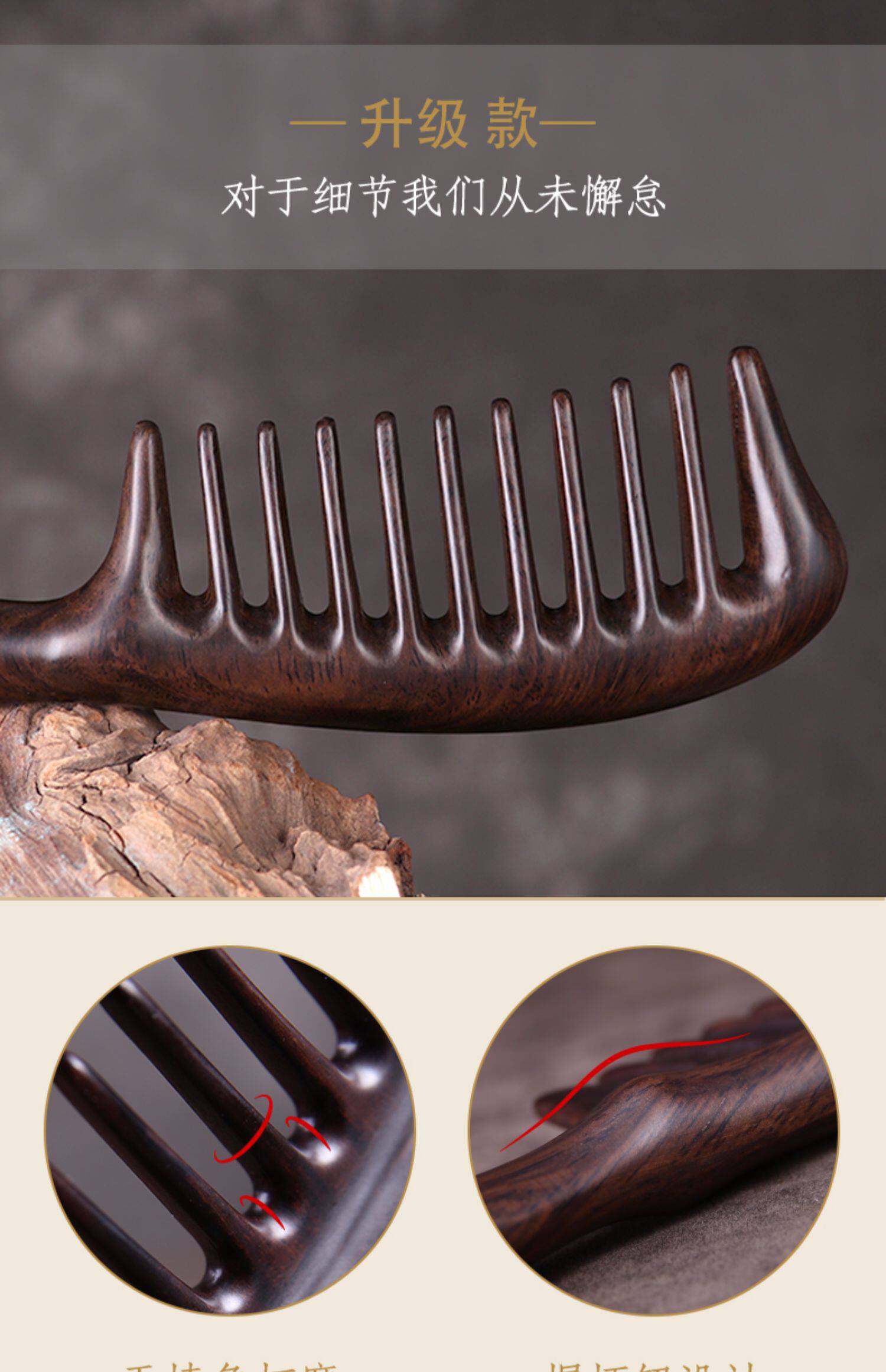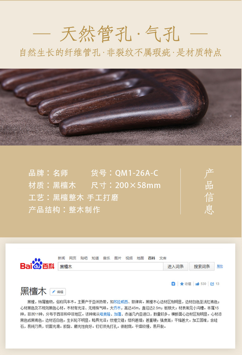 名师 Натуральный кудрявый антистатический массажер из черного дерева Эбен из сандалового дерева, расческа