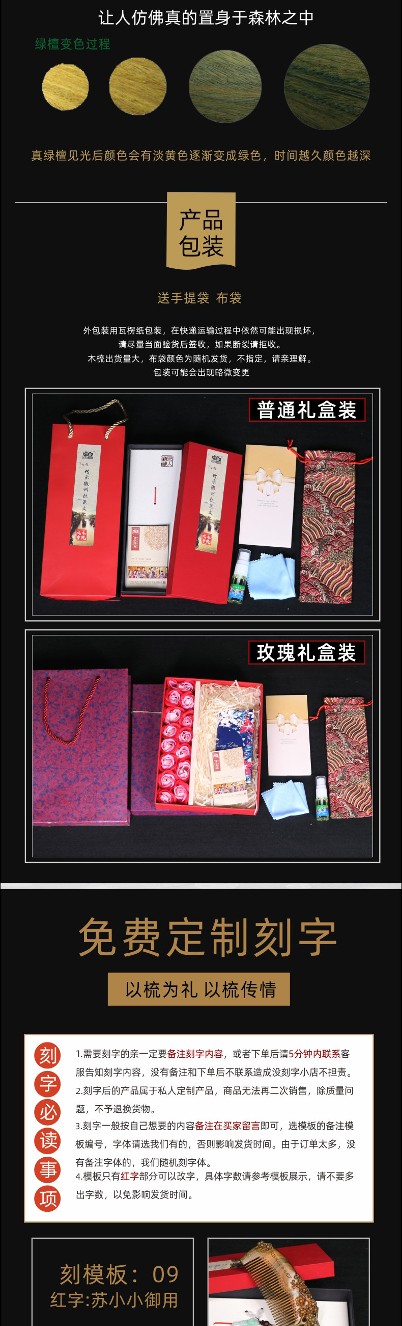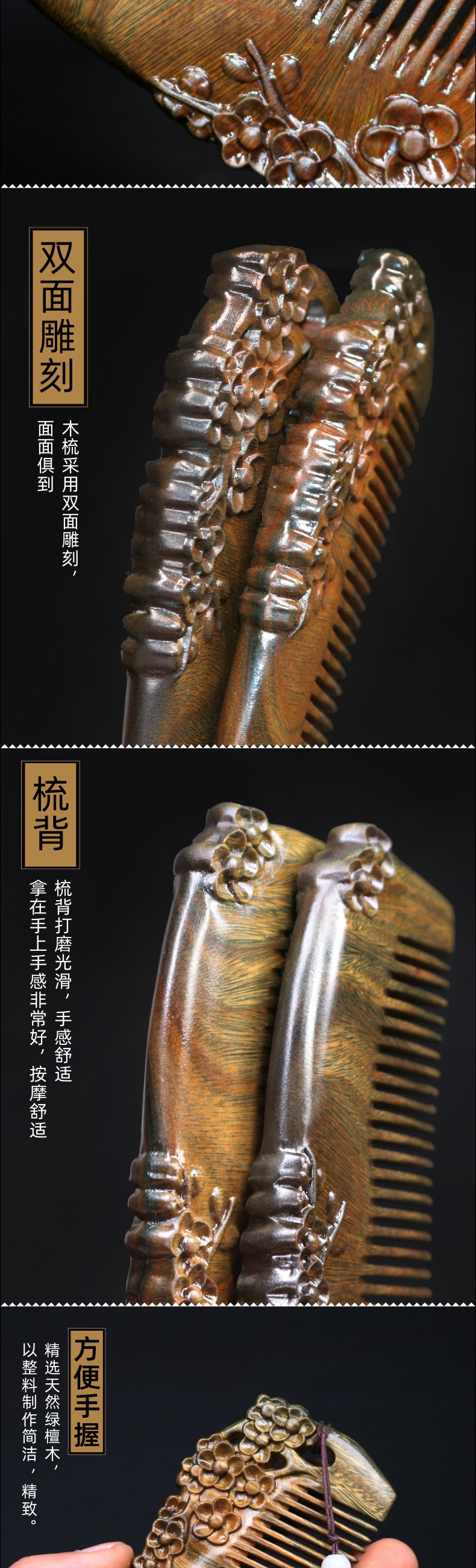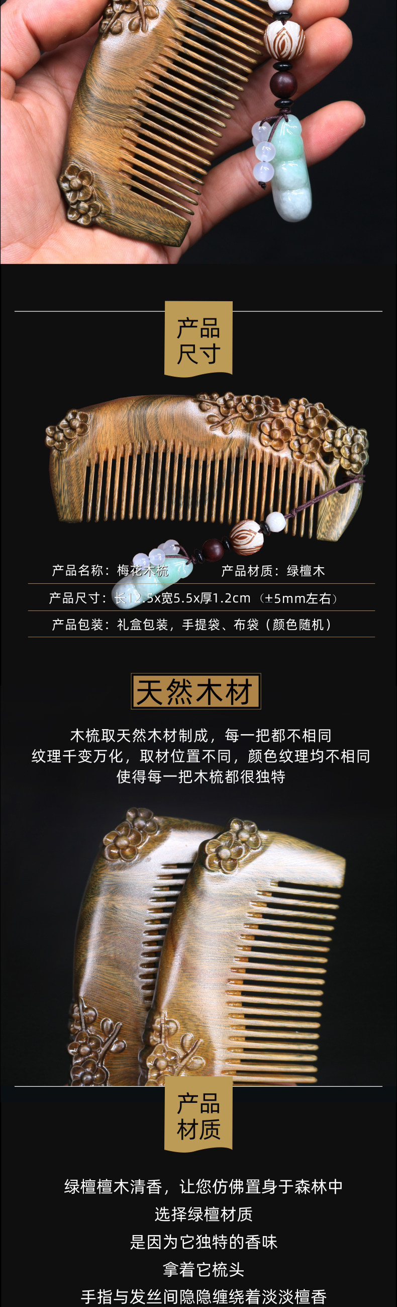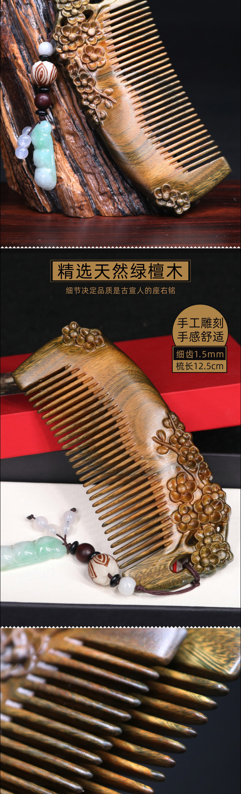 古宣 Натуральная расческа из зеленого сандала из сандалового дерева, делается под заказ, для влюбленных, подарок на день рождения