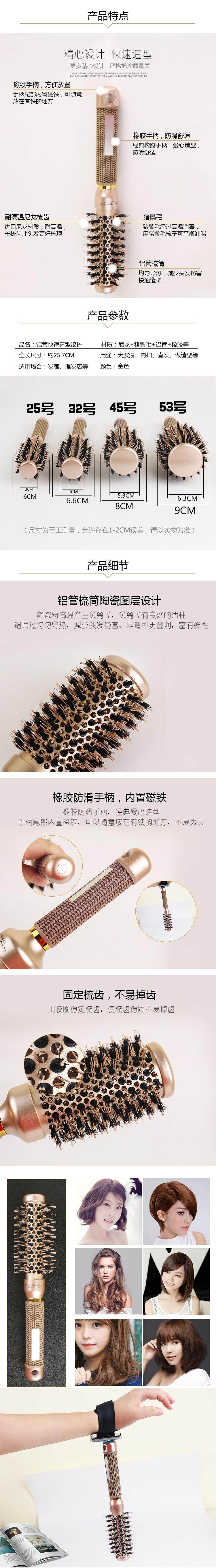 Красивая расческа для волос, вьющиеся г -жа воздушные челки. Расчесывая пушистая расчесывая расчесывая алюминиевая трубка круглый расчесывание парикмахерской.