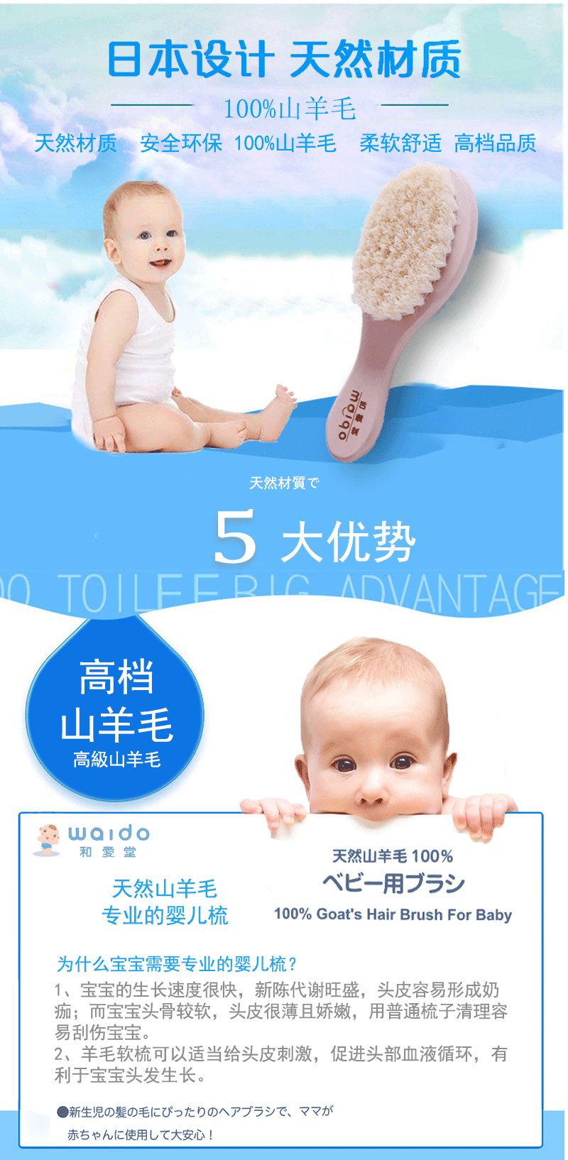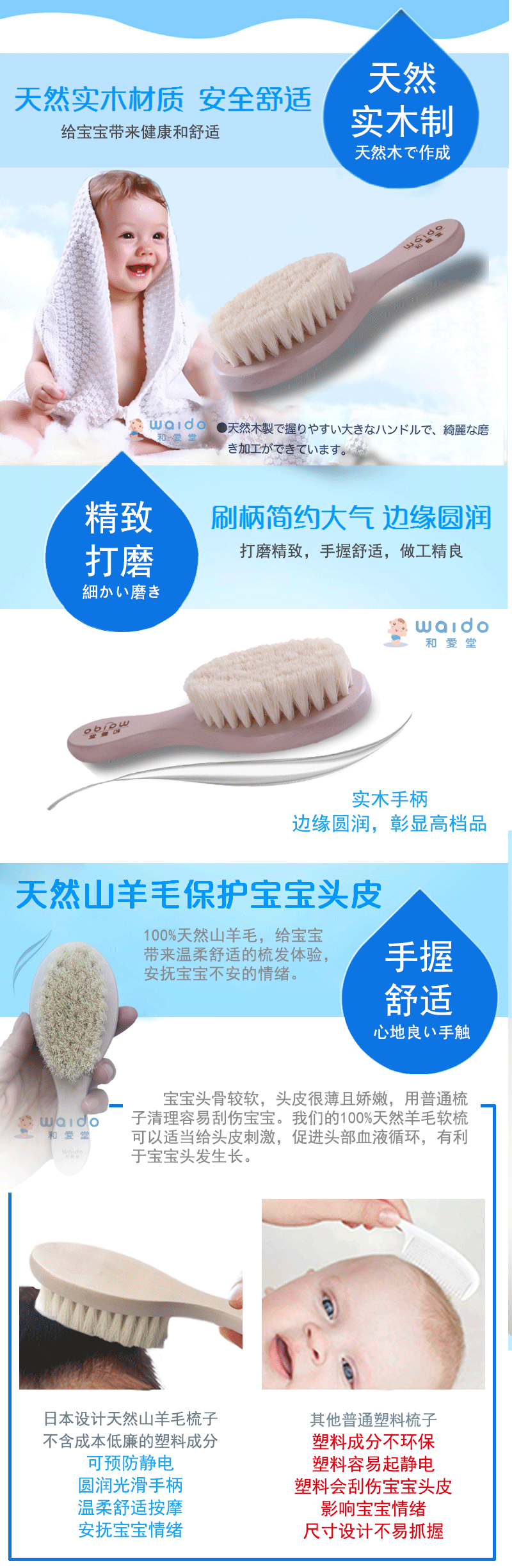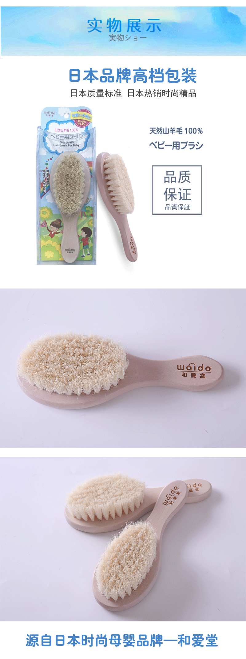 Япония Waido/и Aitang Baby Monte детские волосы расчесывались, чтобы почистить заголовок Tinea Tinea, детская мягкая расческа для волос