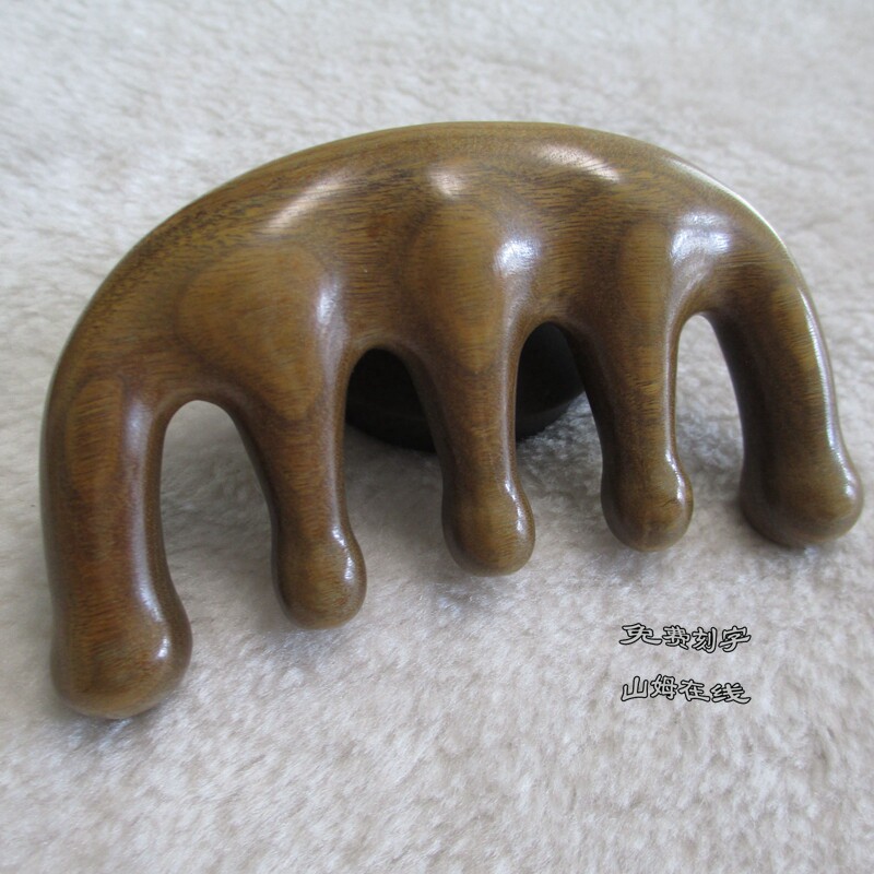 Массажер для кожи головы, маленькая натуральная расческа из зеленого сандала из сандалового дерева с гравюрой