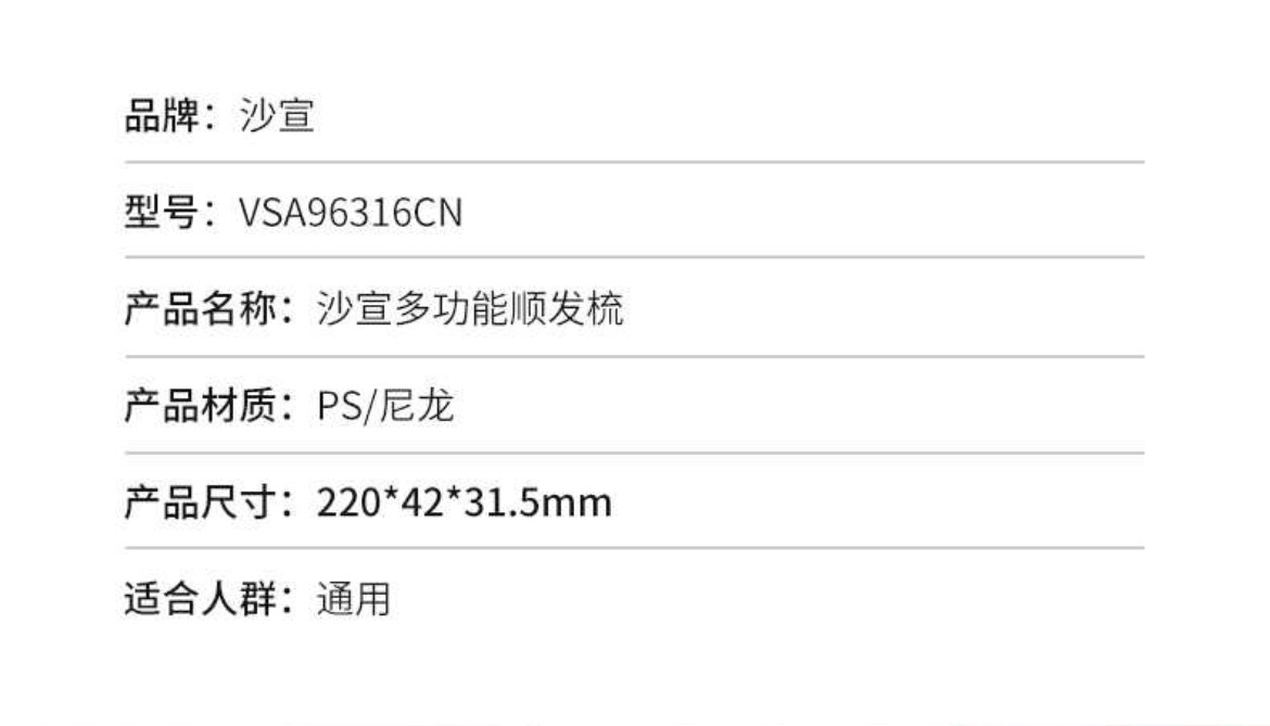 VS Sassoon Quick Styling/Multifunctional Hair Comb/Ion Cround Curly Compe/Soft Mount Cuff Quice Dry Drolling Comp