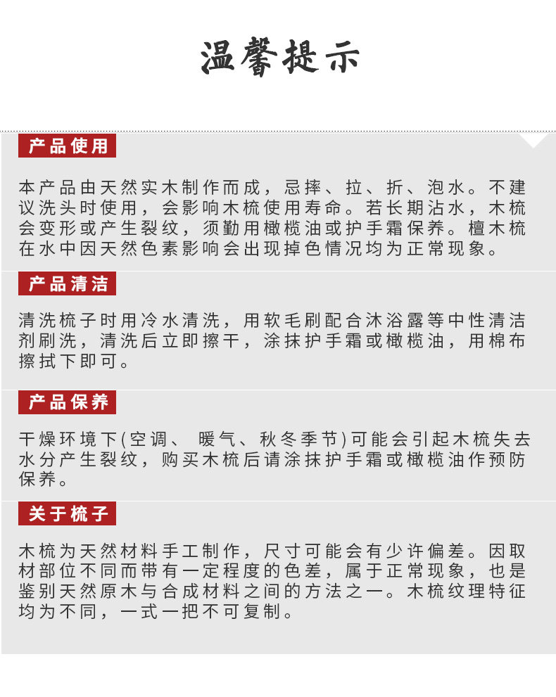 Портативная детская натуральная расческа из сандалового дерева