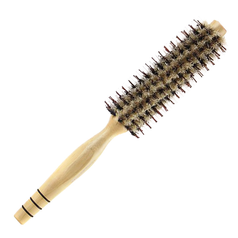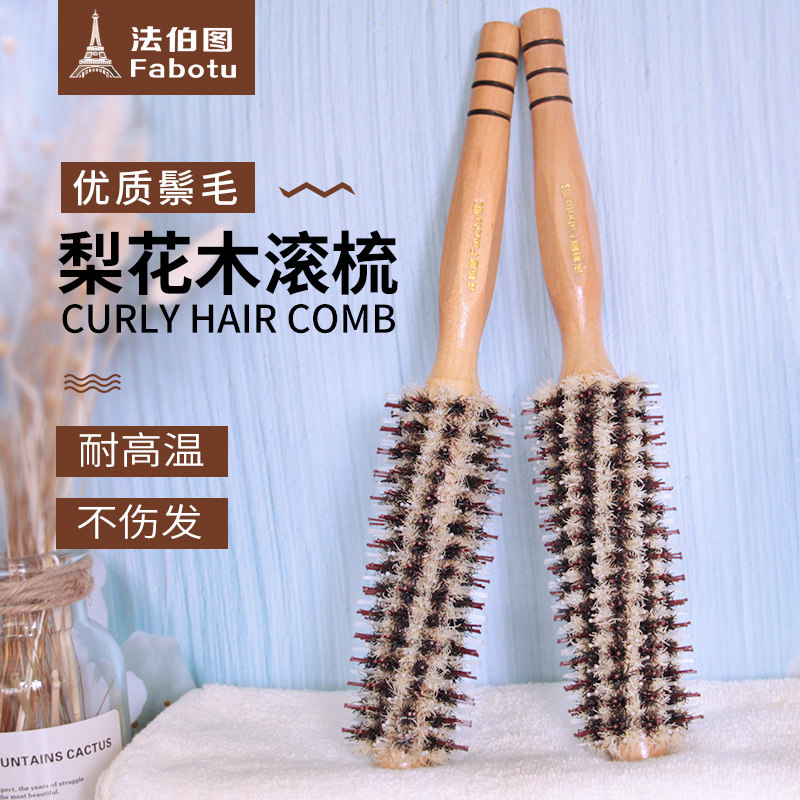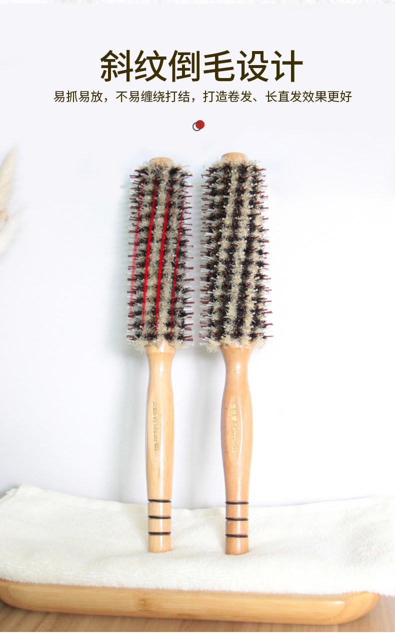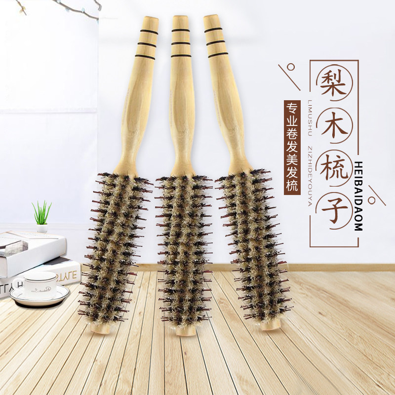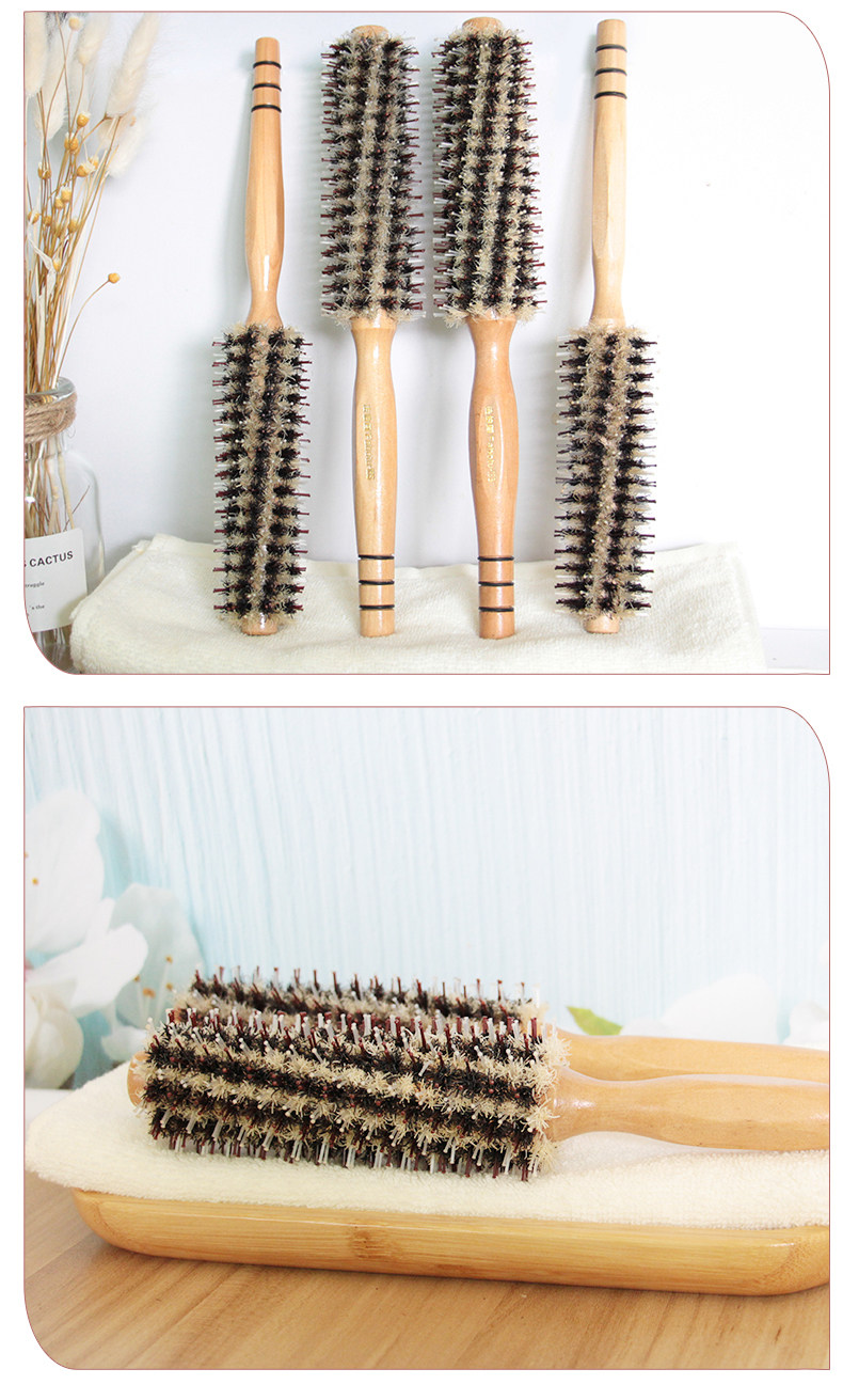 Кудрявые волосы расчесывают девушку из щетины и деревянная в форме расчесывания волос Профессиональный коридор.