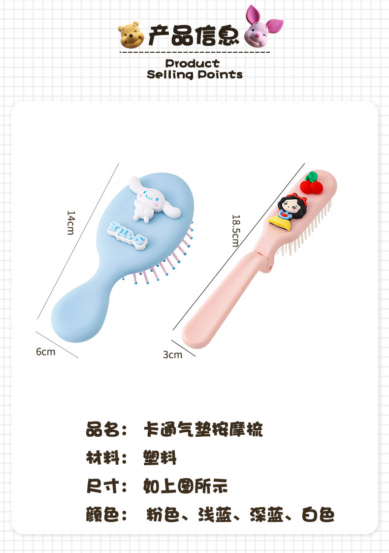 Детская безвредная расческа, мультяшный антистатический кушон