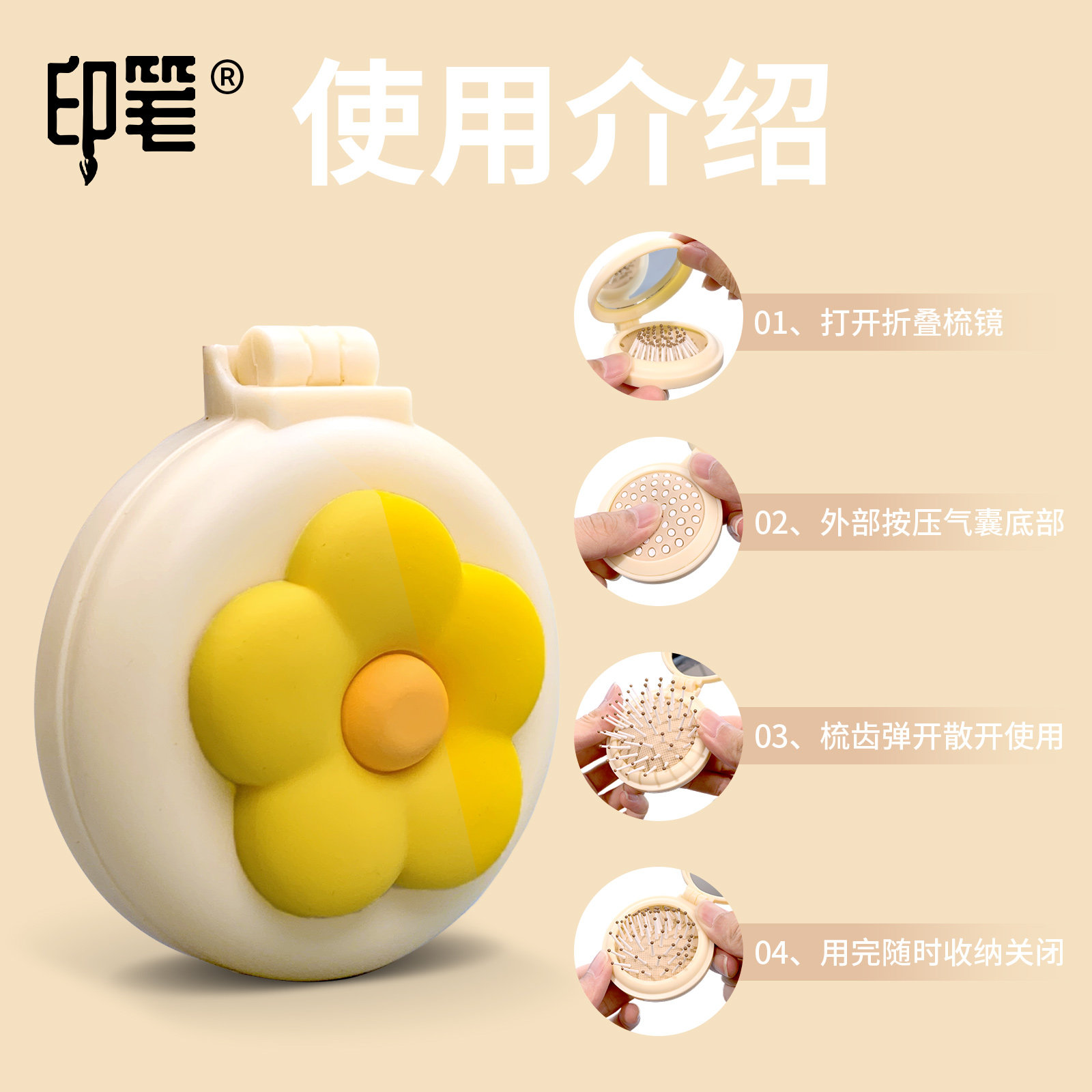 Расческа, кушон, складная подушка безопасности, портативное складное зеркало