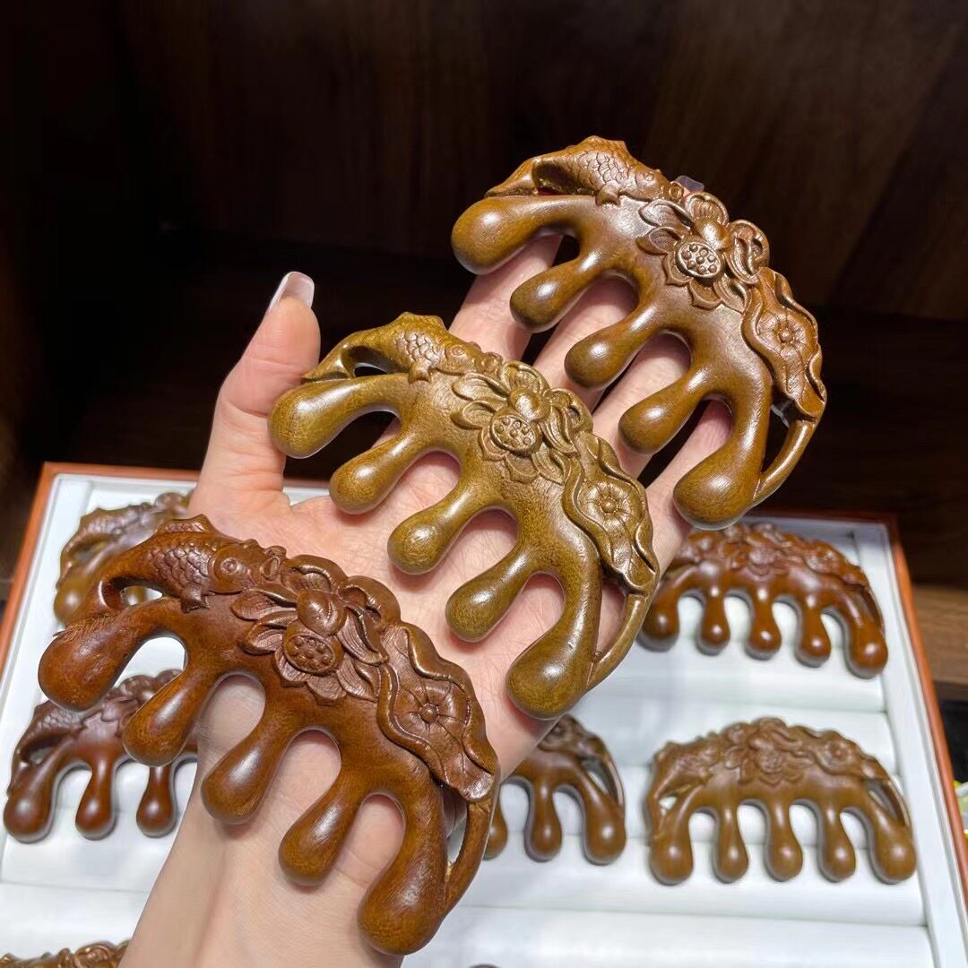 Золотой шелк и зеленый сандаловый дерево есть рыба каждый год, массажная расческа, глава меридиан, размер: 9,5 × 1,8 мм CF207