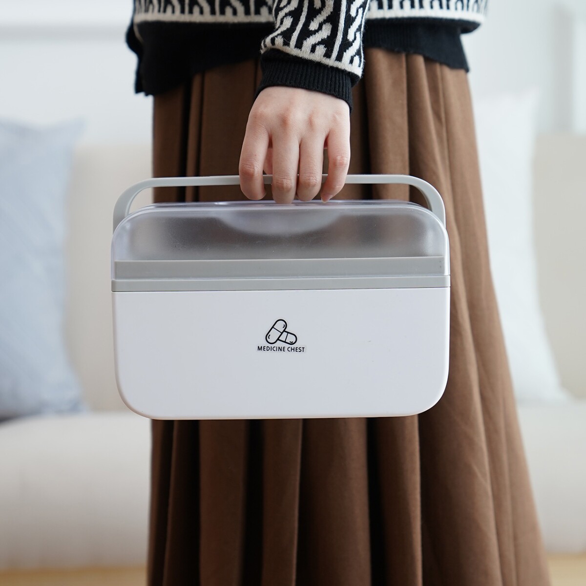 Семейная установка двух слоя медицины, ручная рука рука рук в руке в руке, ящик для неотложной медицинской помощи.