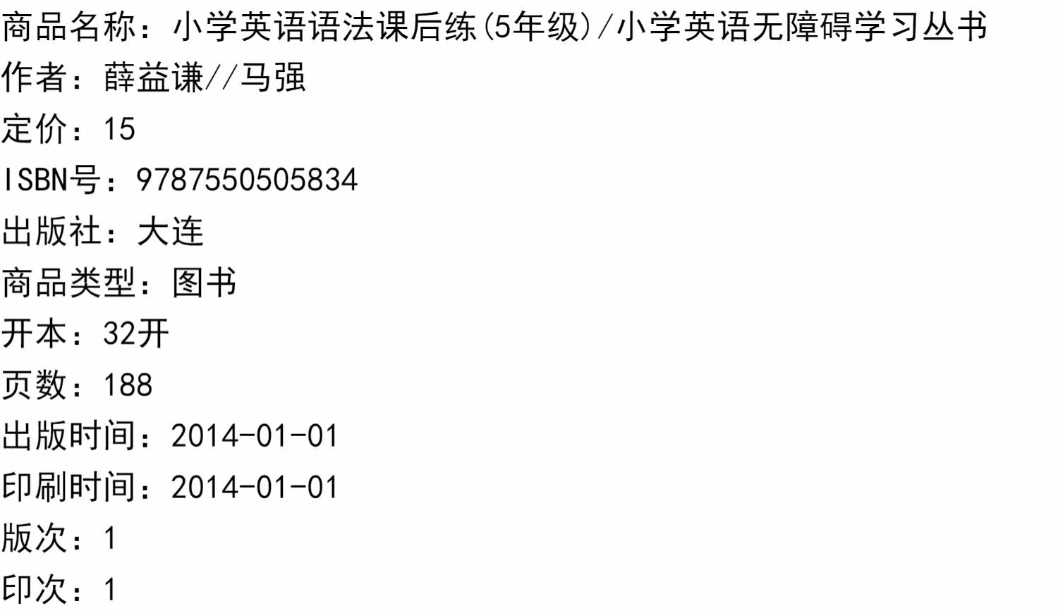 [小学英语语法课后练(5年级)/小学英语无障碍学习丛书]