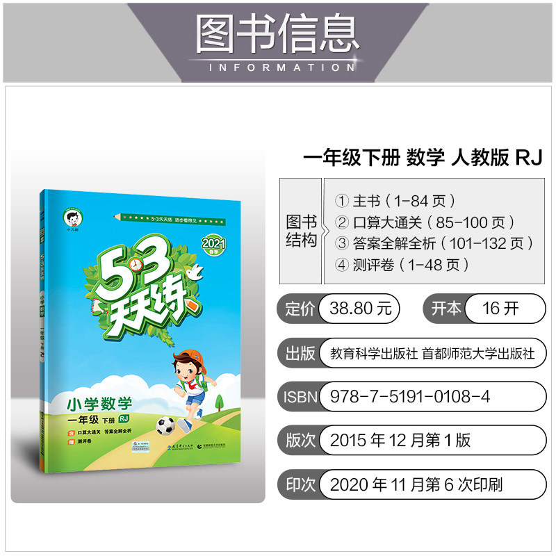 Тетрадь для первого класса для обучения математике для тренировок для школьников, карточки с вопросами для устного счета, коллекция 2021, новая версия, 53 дней, практика каждый день