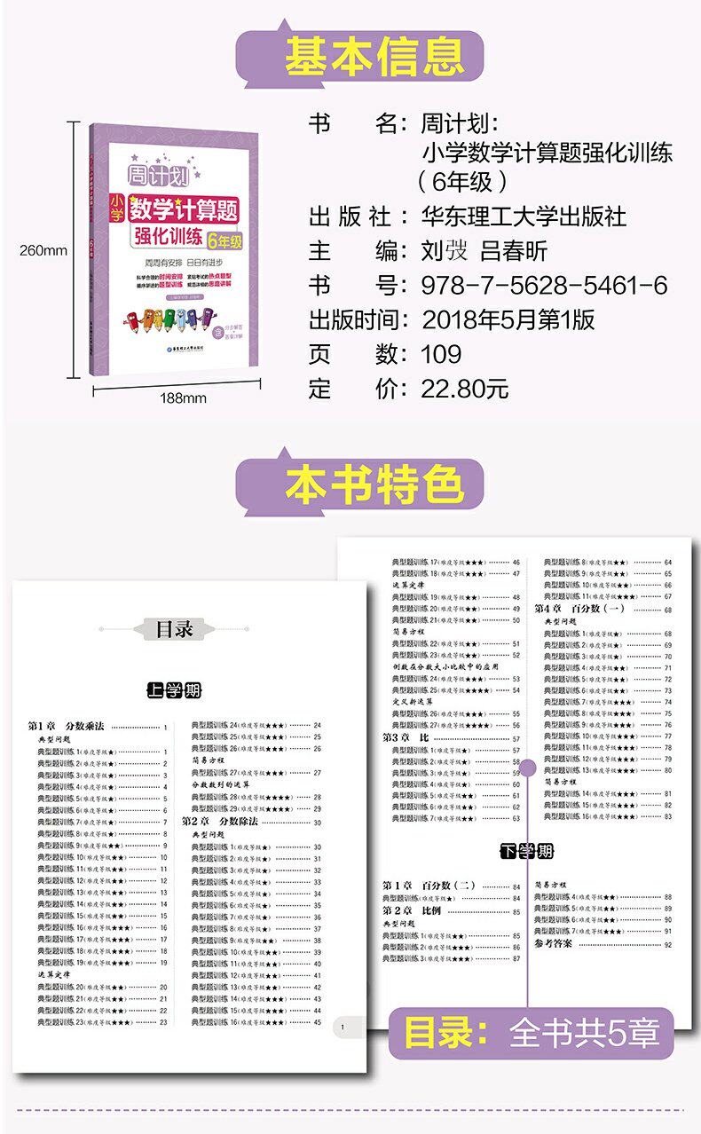 Все 2 книги еженедельные планы в начальной школе. Вопросы по расчетам математики+Вопросы по применению подкрепление обучение шестому классу+xiaosheng Chuan/6 -й класс. Объем содержит шаги ответов+Ответы Подробное объяснение