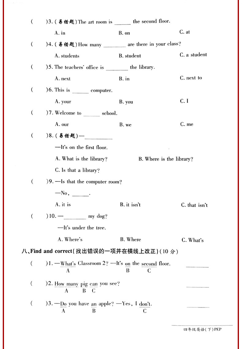 2021 Spring Edition Последний AB Том 4-й класс 2 Английская тестовая бумага для образовательного издания Pep