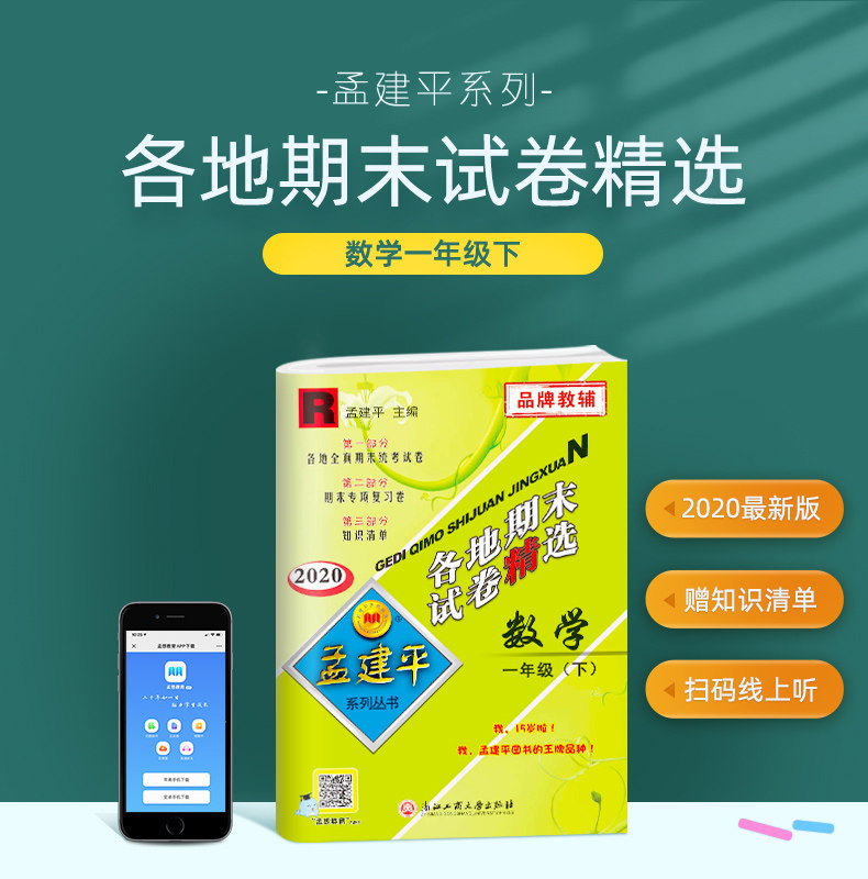 Весна 2020 года, Мэн Цзяньпин, первый класс, второй том, контрольная работа по математике, синхронное обучение, Народное образовательное издание, местные выпускные тестовые работы, выбранная тестовая бумага для первого класса, второй модуль начальной школы, полный набор обзорных материалов, симуляционный тест, тетрадь, учебное пособие, подлинное издание