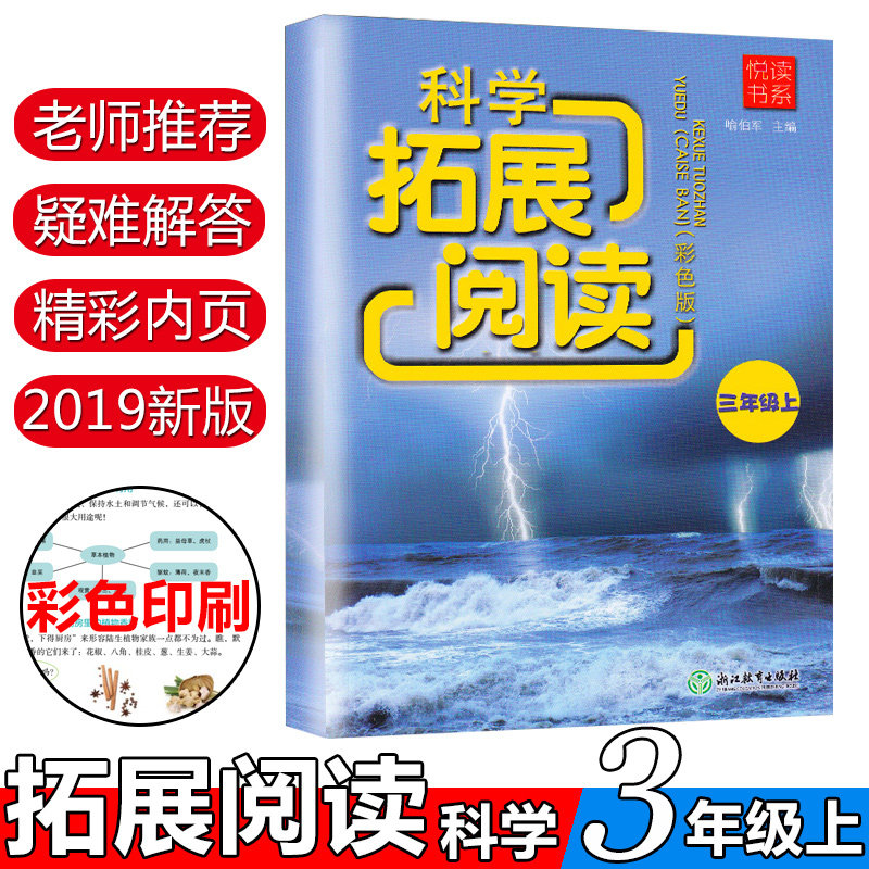 Отдел чтения Юэ Научное расширенное чтение Цветное издание Третий класс Том 1 Чжэцзянская образовательная пресса Синхронные внеклассные чтения для учащихся 3-го класса Начальной школы Энциклопедия по биологии, растениям и естественным знаниям Руководство для помощника преподавателя / Подлинное