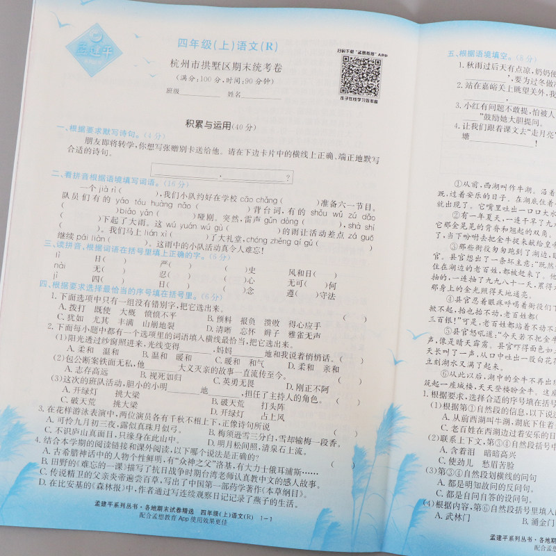 2020 Осень Новая версия четвертого класса Менга Цзяньпинга Китайского тестовых документов Синхронозное учебное издание Версии человеческого образования окончательного выбора тестовой статьи начальной школы 4 -го класса Полный набор обзоров