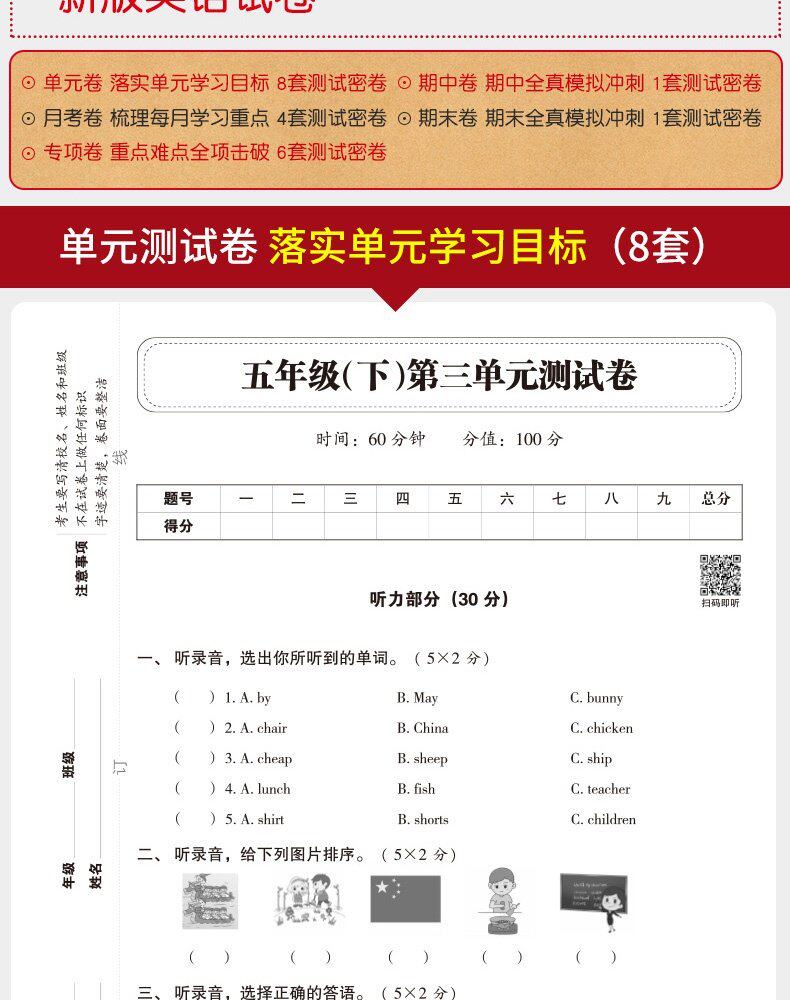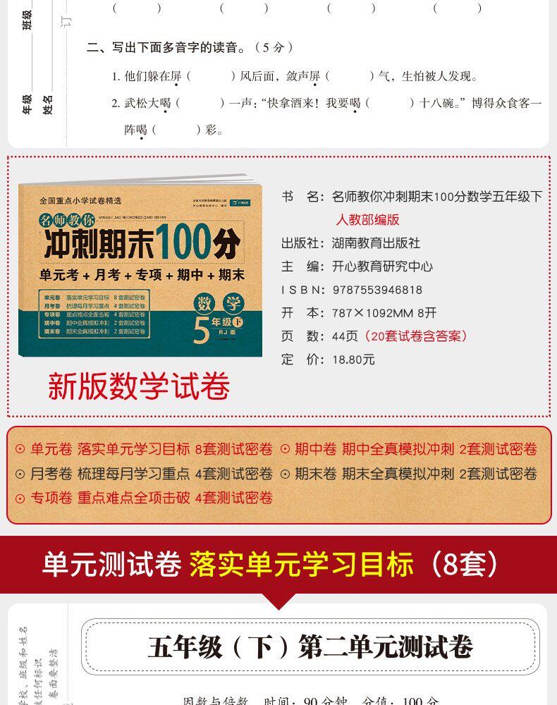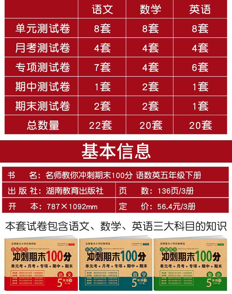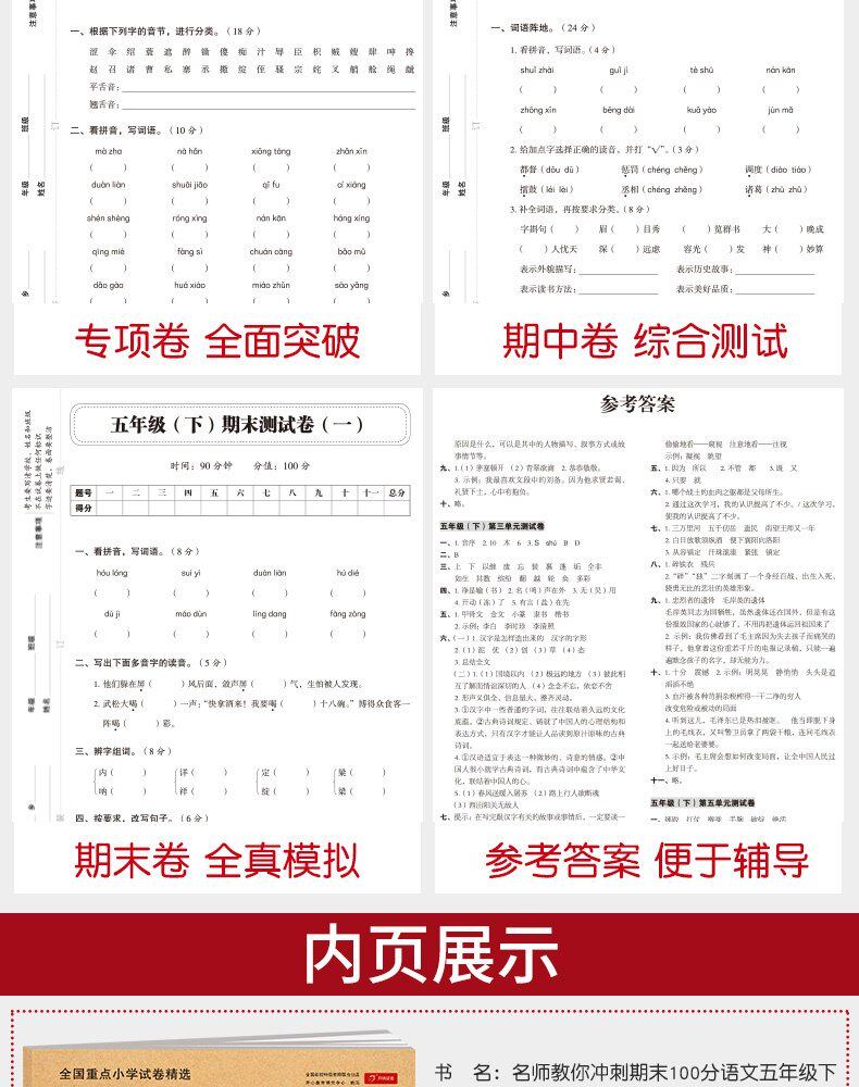 2023 New Edition Пятый класс Пятый книжный тест бумага RV 5 класса китайская+математика+математика+английская книжная тестовая бумага Конец 100 -точкой синхронной тренировки
