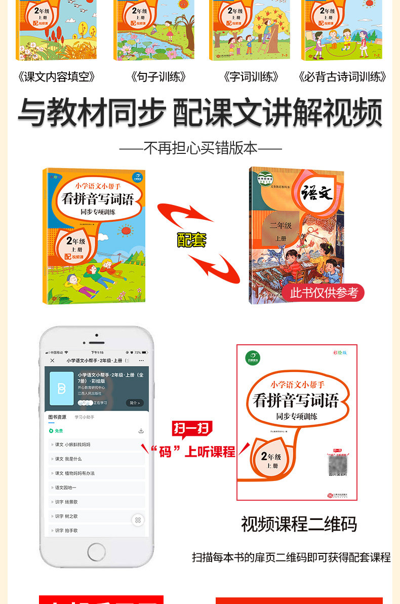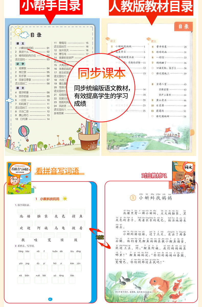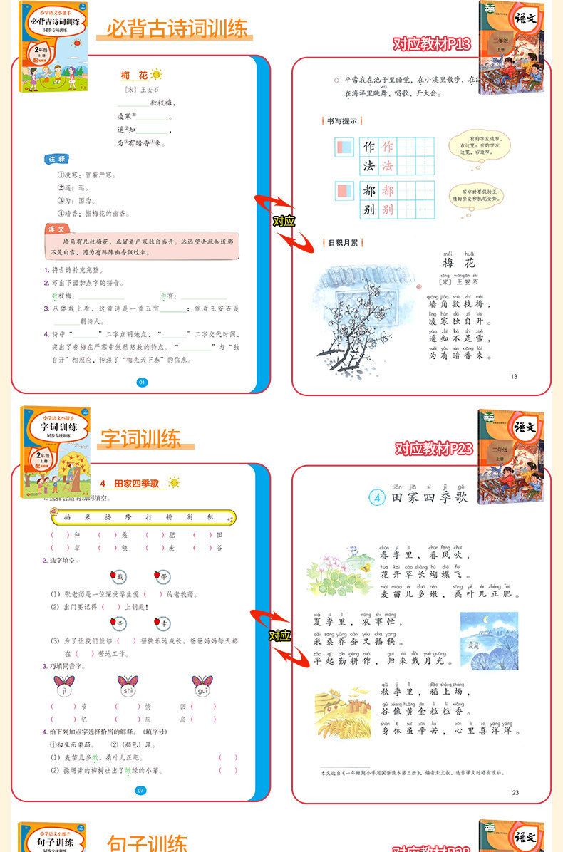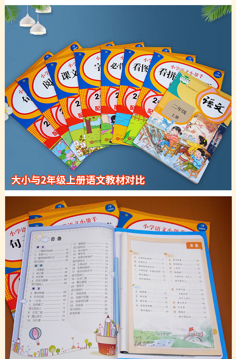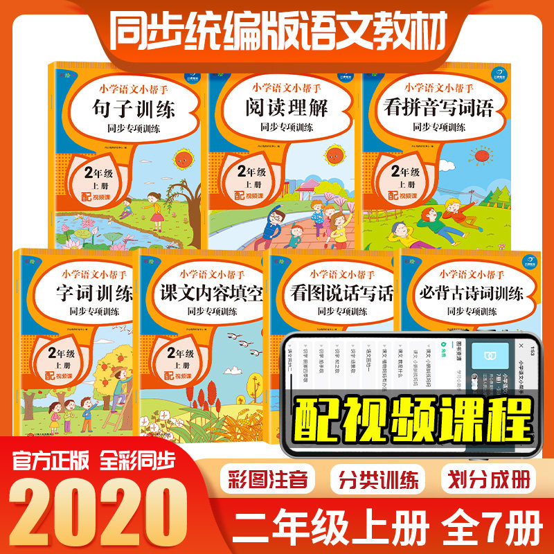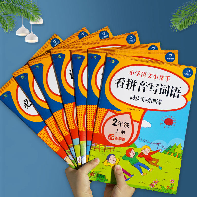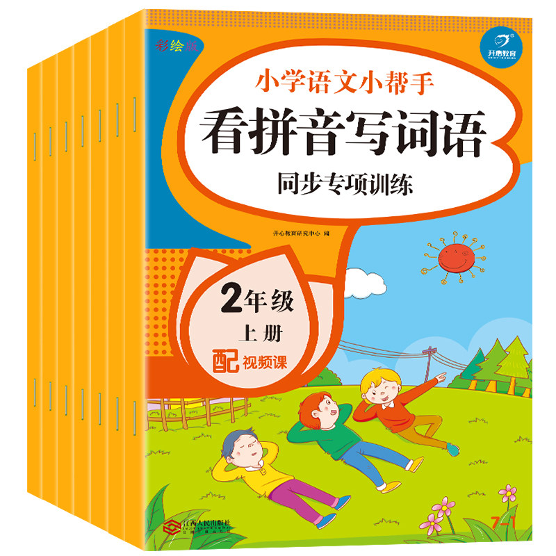 Полный комплект из 7 книг для второго класса, том 1, синхронное обучение китайскому языку в классе. Смотри картинки, пиши слова, читай пиньинь, пиши слова и тренируй понимание прочитанного. Издание People's Education Edition. Помощник по китайскому языку для начальной школы. Синхронное упражнение по китайскому языку для 2-го класса.