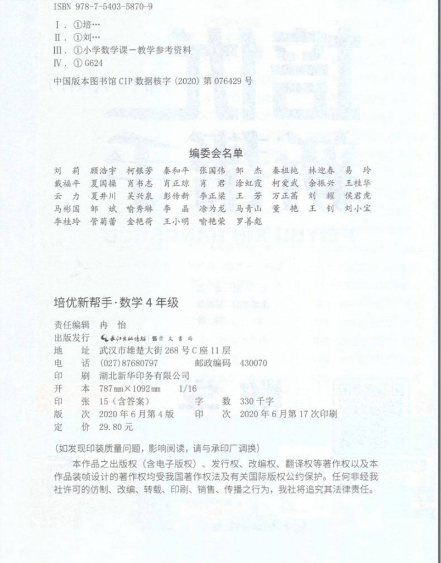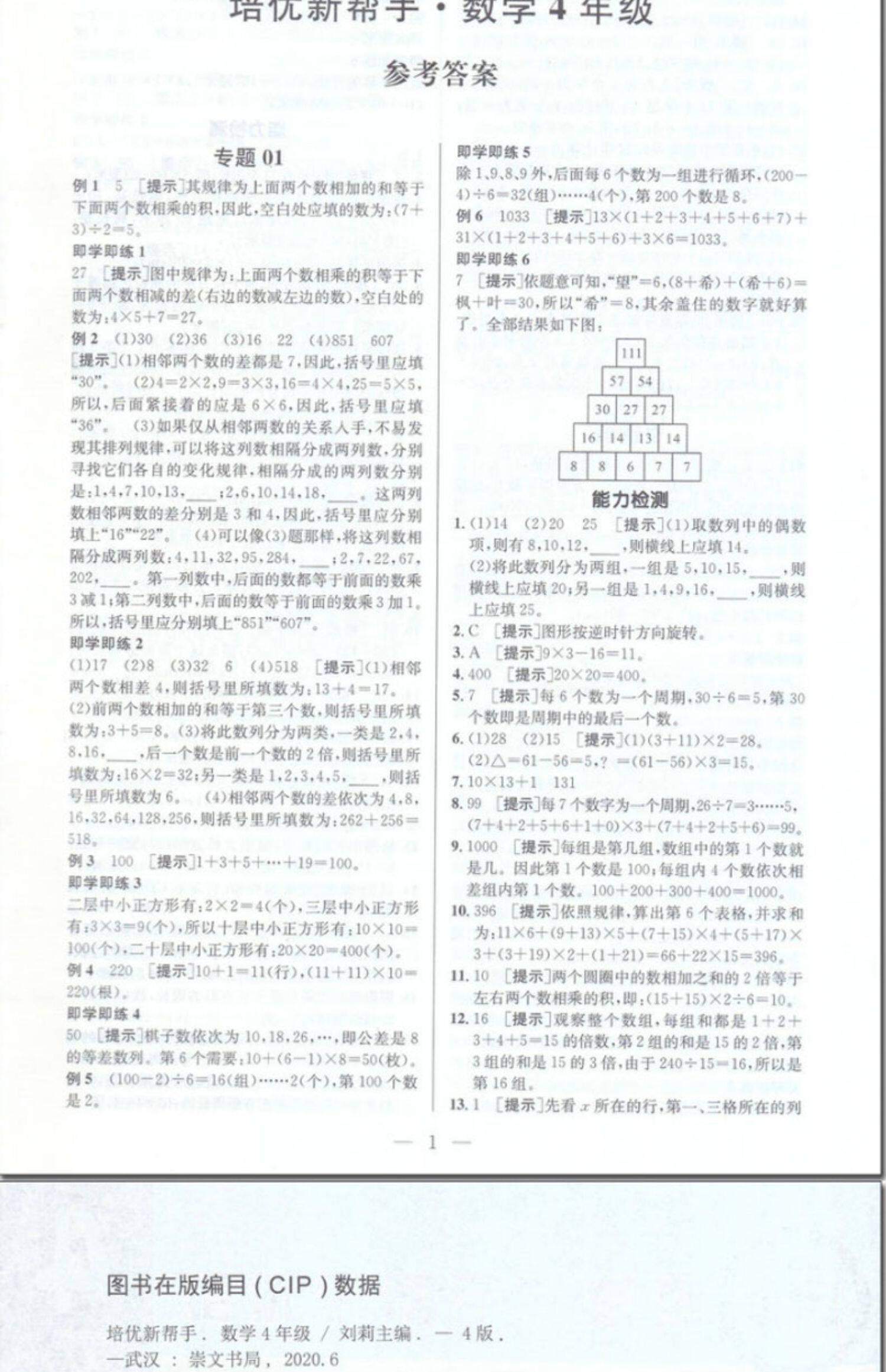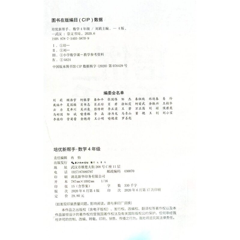 2020 Новая версия Peiyou Новая справка по математике 4 -го класса 4 -го класса обновленная версия Songwen Education Начальная школа.
