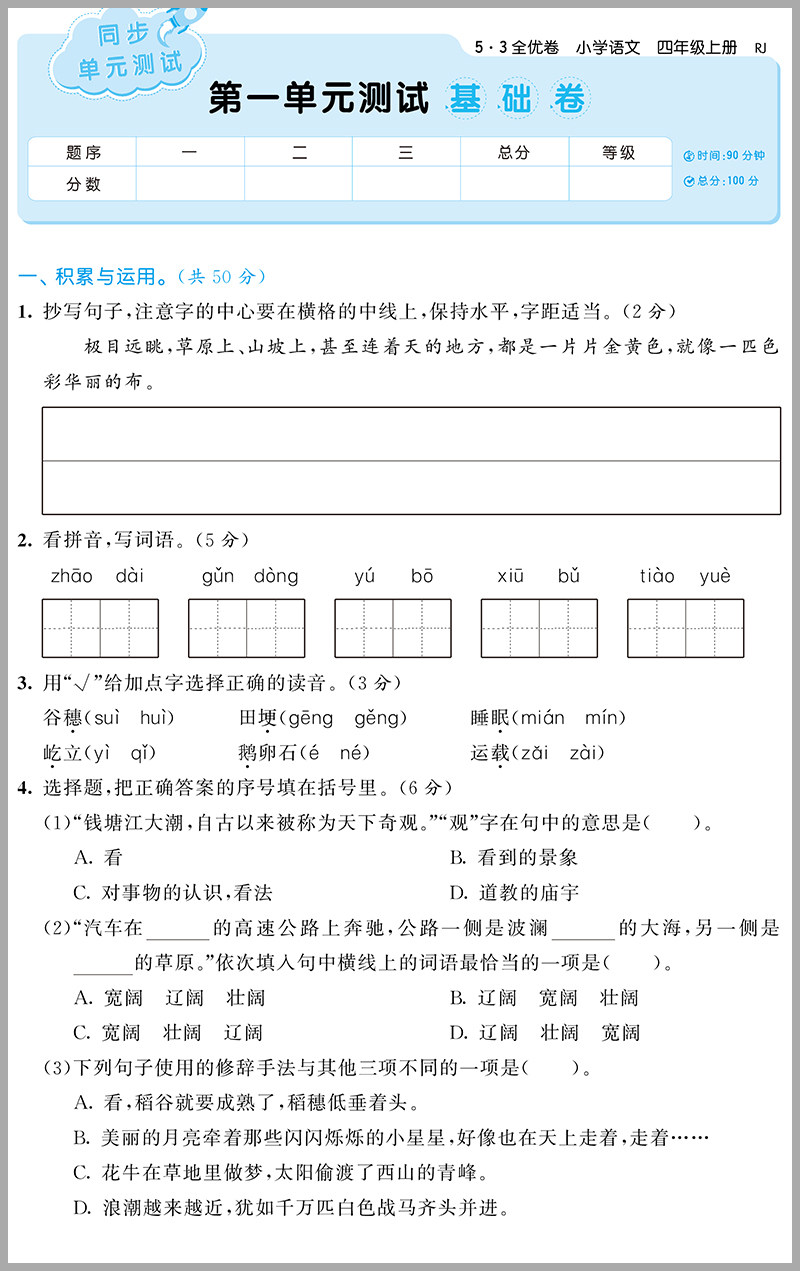2021 Начальная школа QIU 53 Полная отличная бумага 4 -го класса 4 -го класса.