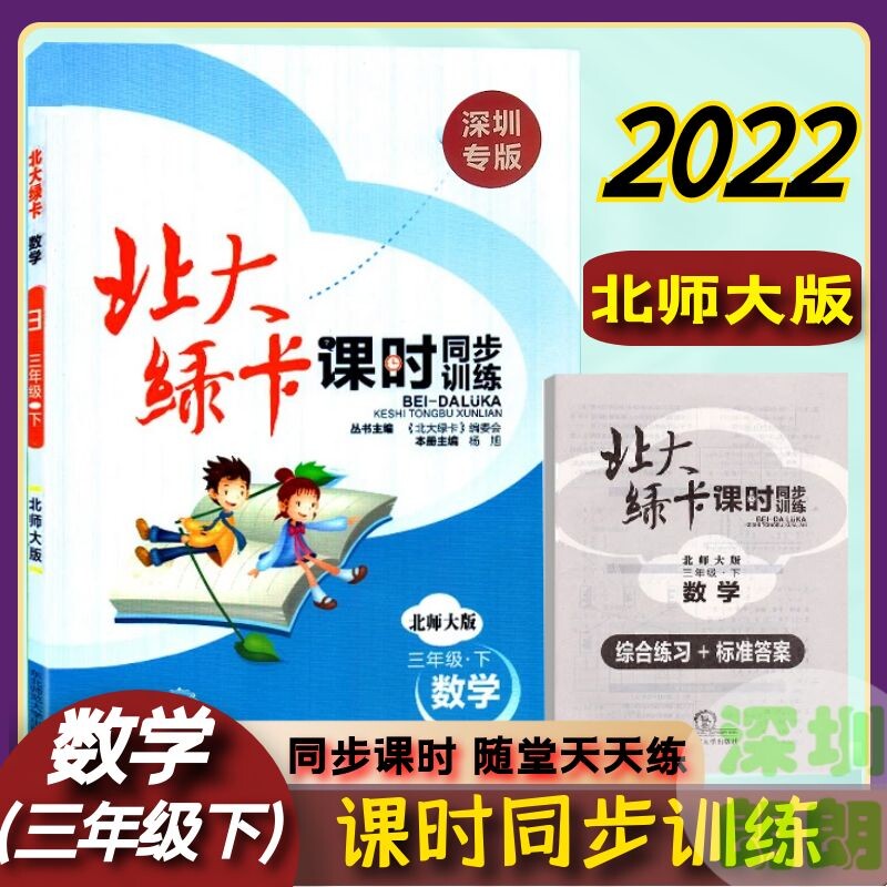 2022 Shenzhen Special Edition University Peking University Green Card Mathematics Книга третьего класса Университета BEI Edition Edition 3 класс 3 Книга математики Mathematics BS Edition Учебник Синхронный упражнение для тестирования в конце среднего уровня