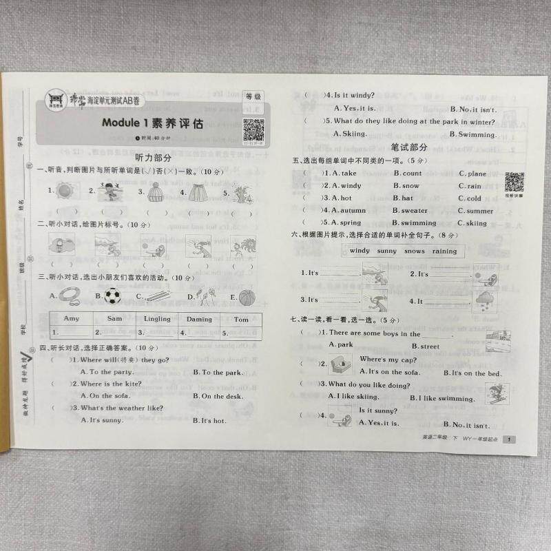 «Очень хайдяньский модульный тест»Объем АБ. Английский для второго класса, часть 2, WY, начало первого класса» под редакцией Чжан Гоцзяня