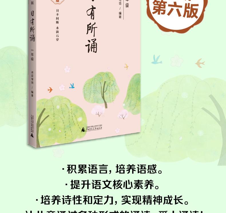 Шестой издание «Чувствовать что -то в день» - это сердечная работа, которая была близка к команде родного языка после более чем десяти лет исследований и экспериментов, составленный и пересмотренный в течение пяти лет. , и он был продан в течение 15 лет. «Чтение чего -то в день» (шестое издание). Поэтические тексты с осмысленной рифмой, литературной красотой и природной красотой;После нового пересмотра команды родного языка, небольшое количество выбранных статей, которые несколько далеко от нынешней жизни детей, заменяется, и добавляется лучший контент. Интерес к чтению и позвольте детям пройти через различные формальные рецидивы, влюбиться в чтение, накопление языка, формировать чувство языка, улучшать китайскую грамотность;