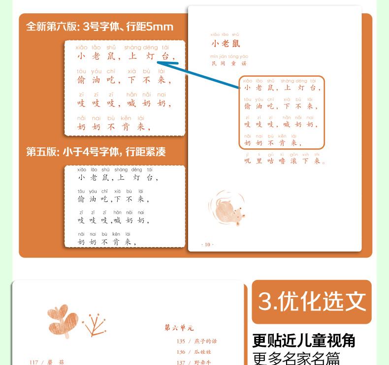 Чтобы защитить глаза детей, шестое издание «чтения чего -либо в день» увеличивает размер шрифта и увеличивает расстояние между линиями, что соответствует требованиям нового национального стандарта; маленькими детьми;5 минут в день, повторяйте что -нибудь каждый день и аккуратно поднимайтесь по склону.