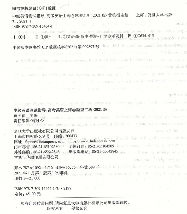 SPOT 2021 EDITION EDITION INTREDIATE ENGLISE TEST Руководство по вступительному экзамену в колледже Английский анализ томов Шанхай (включая CD -ROMS) средней школы старшей школы применимо.