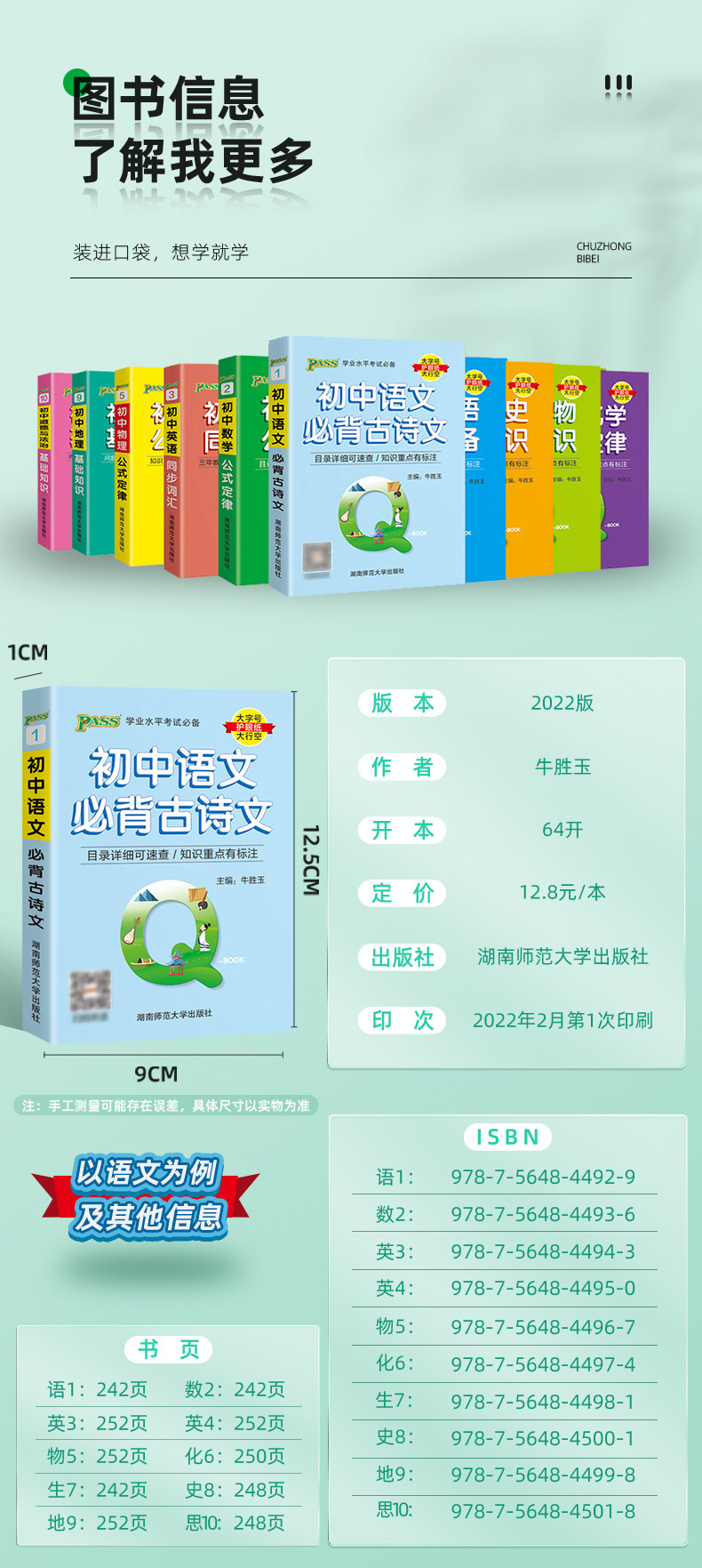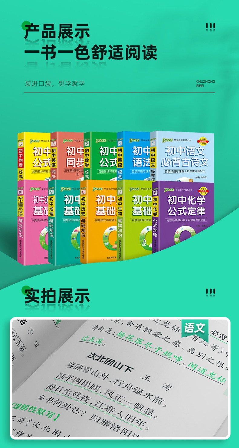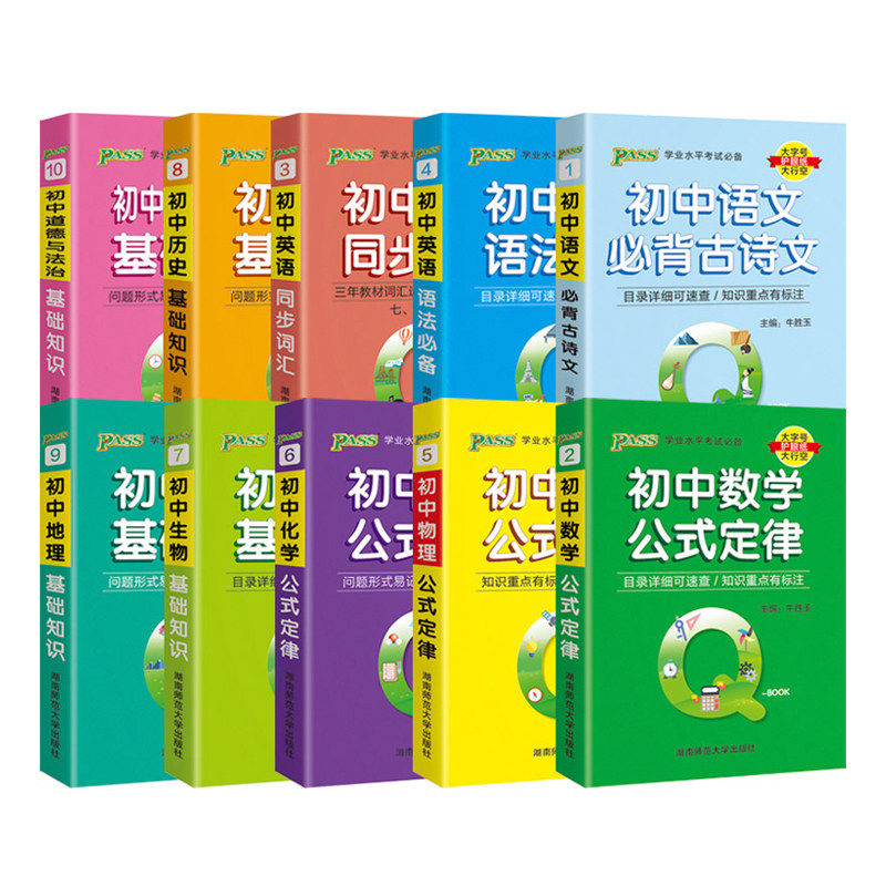 Полный набор из 10 пассов Green Card Book Junior High School Basic Knowledge Руководство по праву карманной книги Полный набор китайской математики, английская физика и биологическая история география, портативная часть