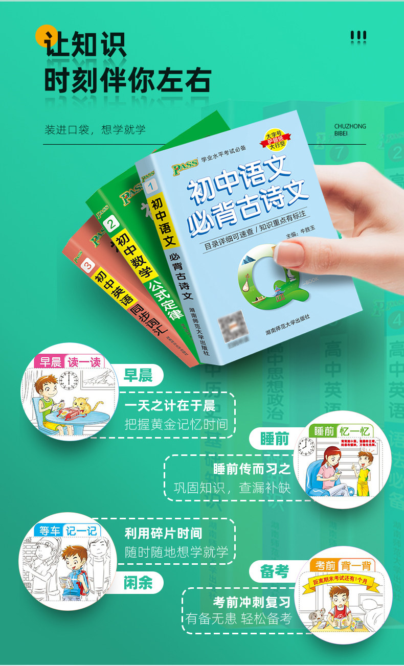 | Посовывать: | Грин-карта для средней школы QBOOK [Полный набор из 10 книг], 【3 книги】Число + Предмет + Химия, 【4 книги】Политика + История + География + Жизнь, Древние китайские стихи, Закон математики, Английский словарный запас, Английская грамматика, Закон Формулы Закон, Химическая формула, Биологические базовые знания, Базовые знания, Исторические базовые знания, Политические базовые знания |