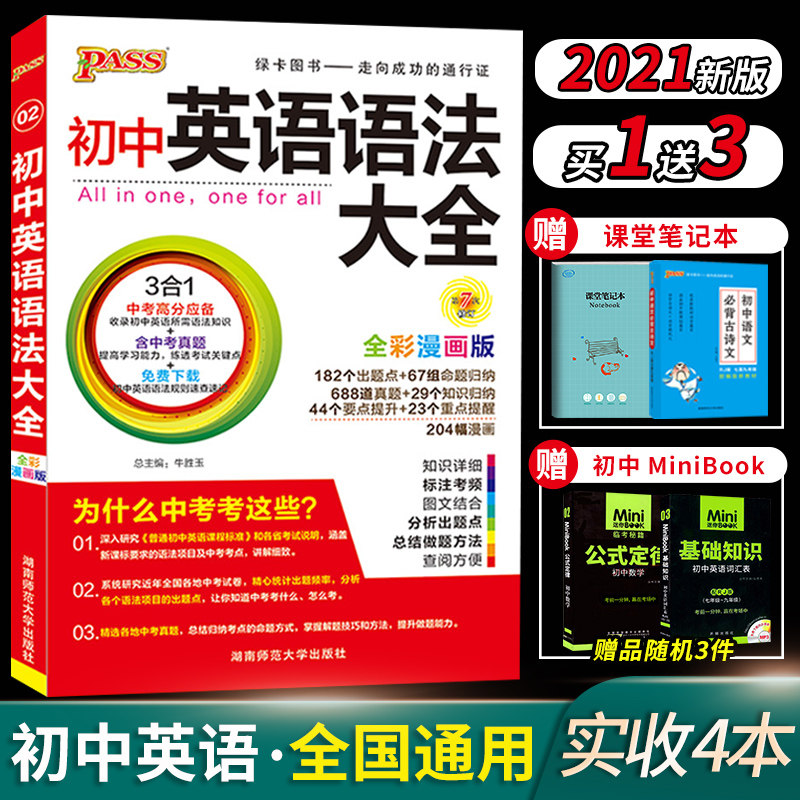 2021Pass Green Card Book Book Junior High School Грамматика Daquan Mess Basic Point Tools Книга седьмого класса восьмого класса девятого младшего средней школы.