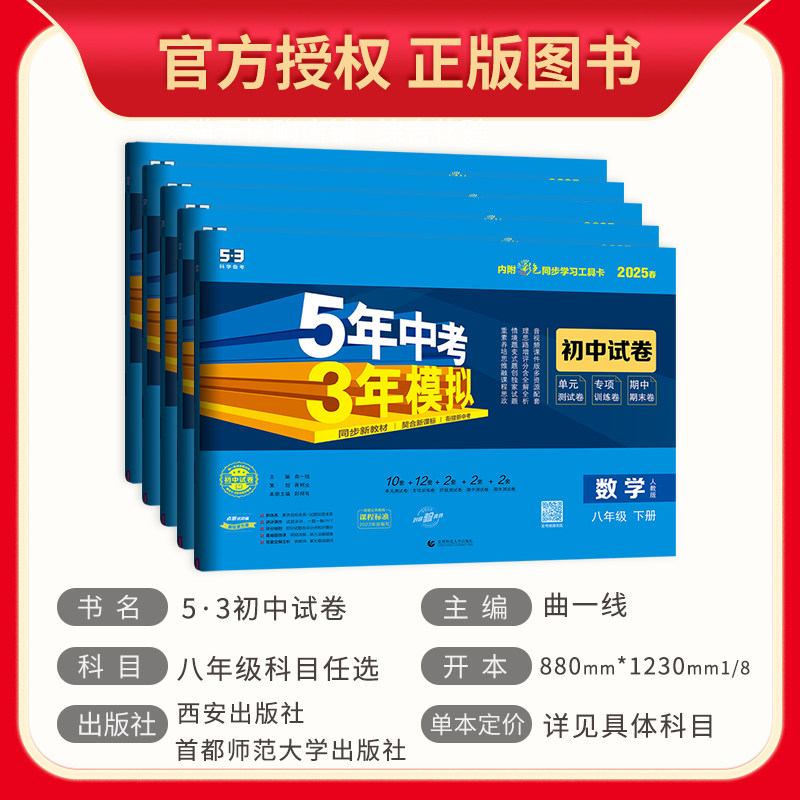 2025 Выпуск 5-летнего вступительного экзамена средней школы в средней школе трехлетней тестовой бумаги для 8-го класса и тома 2 Математика китайская английская физика Политическая история География Биография Народная образовательная образовательная статья Шанхай Ке Пекин Обычный университетский издание 53 Джуниорскую тест средней школы для 2-го класса и 8 класс и восьмерка и тома 1 полного набора тестовых документов.