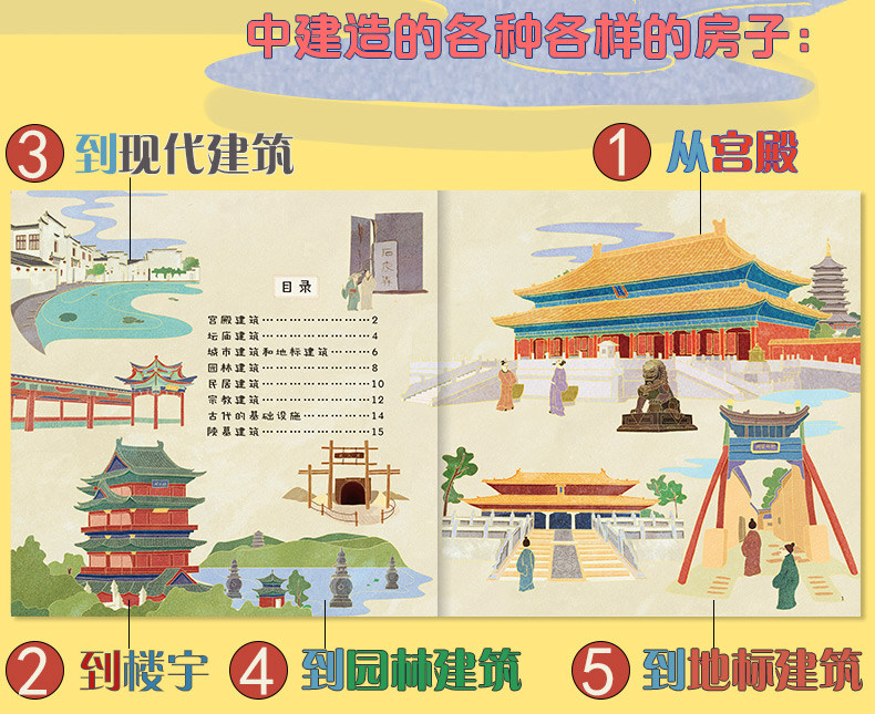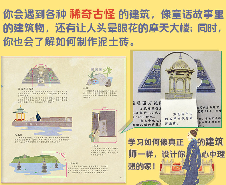 Наши здания + наша китайская всплывающая книга «Великая тысяча миров» для детей 3–6 лет. Более 50 видов местных особенностей. 5 средневековых головоломок.