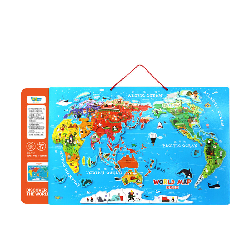 Деревянная магнитная карта, познавательная головоломка, 3-6 лет, обучение