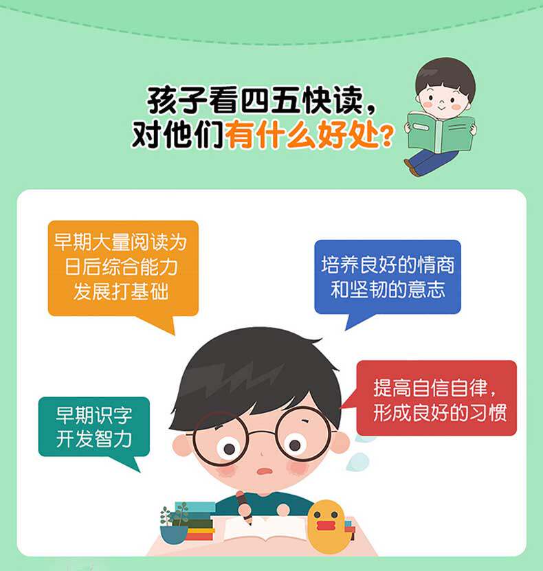 Содержание «Четыре пяти пять историй чтения»: в общей сложности 50 сказочных историй, составленных китайскими иерогенками в четырех или пяти быстрых чтениях.
