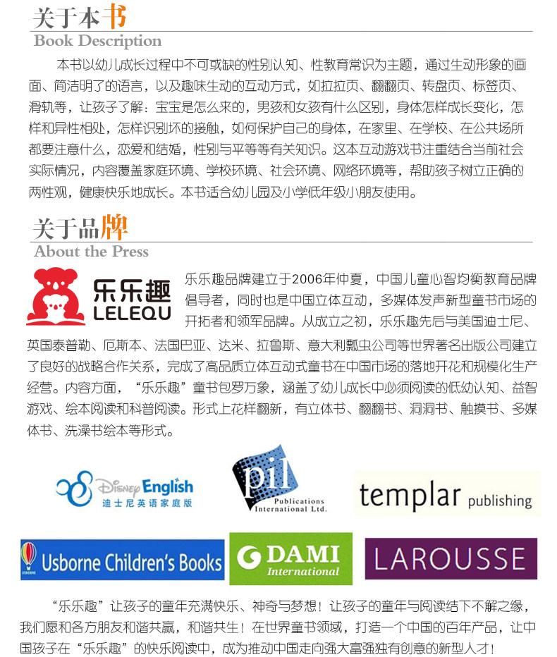 Моменты знаний являются всеобъемлющими, а язык прост и яркий.Содержание включает в себя: Пол природы, откуда ребенок, в чем разница между мальчиками и девочками, как тело растет, как ладить с противоположным полом, как определить плохие контакты, как защитить свои тела , дома, школа, публика в общественности, на что обращать внимание в месте, любви и брака, пола и равенства, связанных с равенством.Обратите внимание на текущую социальную ситуацию, охватывать семейную среду, школьную среду, социальную среду, сетевую среду и т. Д.Помогите детям установить правильный взгляд на пол и вырасти здоровым и счастливым.