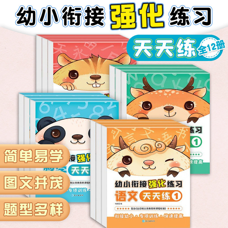 Детские ранние текстовые материалы Полный набор из 12 томов в день, один день, один день, один день, детское сад математики пининина, дошкольное обучение в первом классе перед школой, ежедневная практическая версия дня, десятый метод, добавление и вычитание упражнений по подготовке к небольшим зачислению