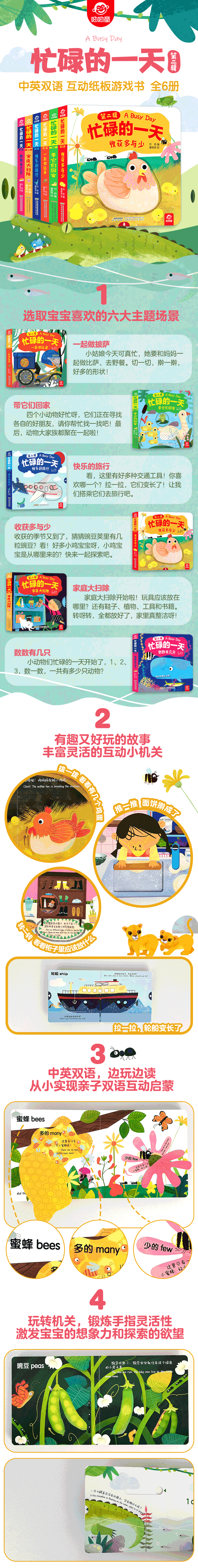 Вторая серия Busy Day состоит из 6 томов, детской книжки-раскладушки, небьющейся книги для 2–3 лет, детской книги для детей от 1 до 6 лет, книжки с картинками для детей в возрасте полутора и двух лет, книги для раннего развития детей, просветительской познавательной пещерной книги.