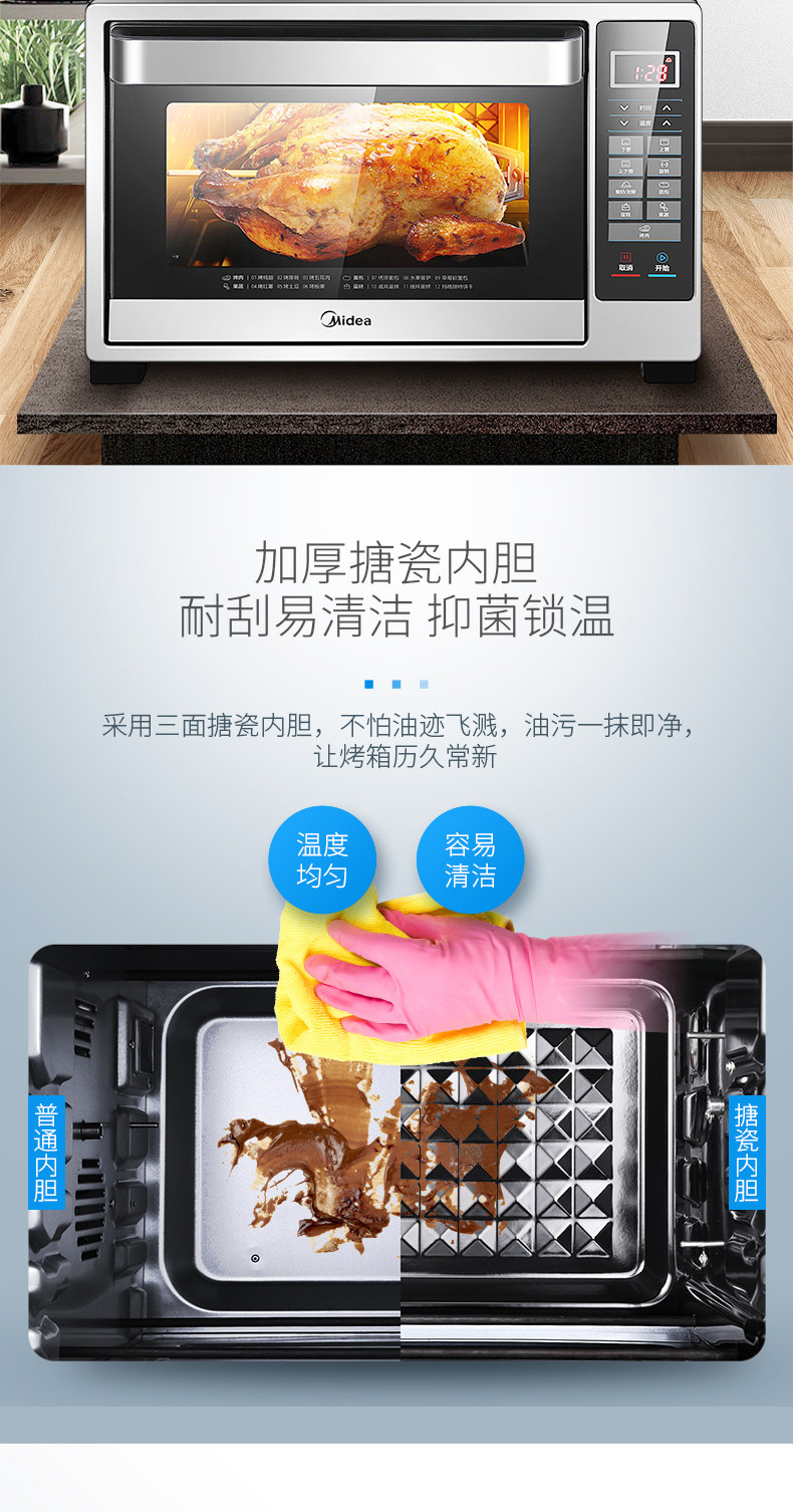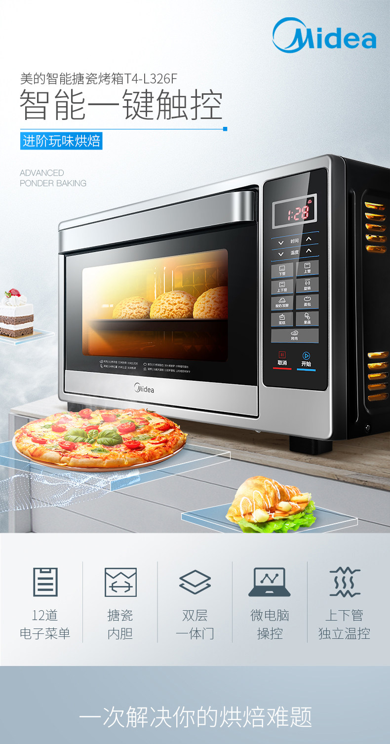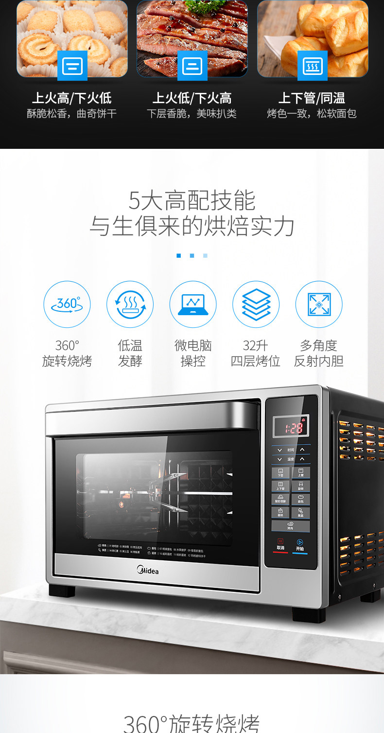 Мидиа -духовка дома 32 -литровая ферментированная разрыв выпечки специальная интеллектуальная точность контроля температуры Эмаль электрическая печь 326f