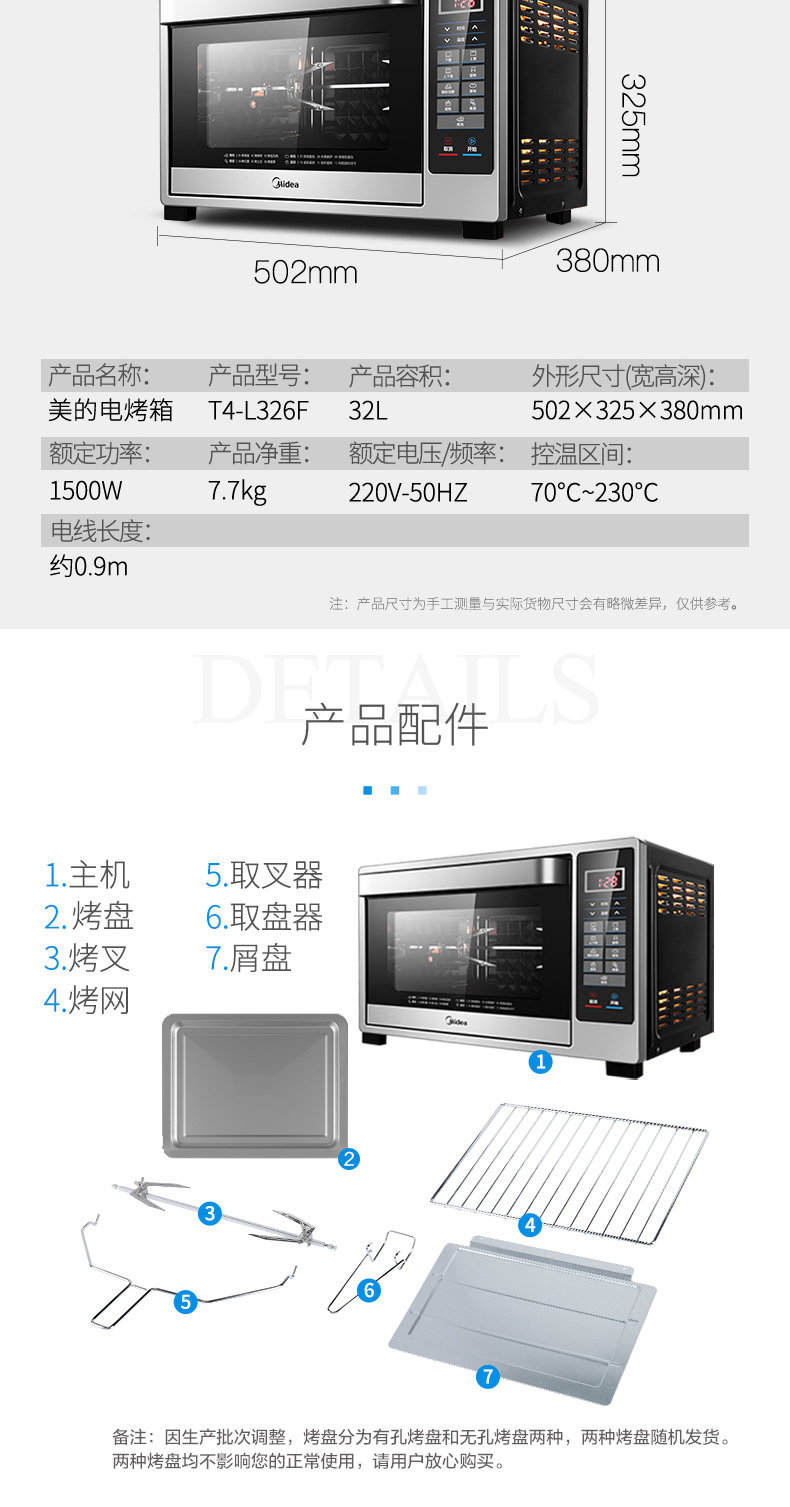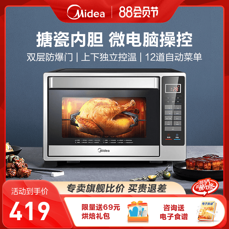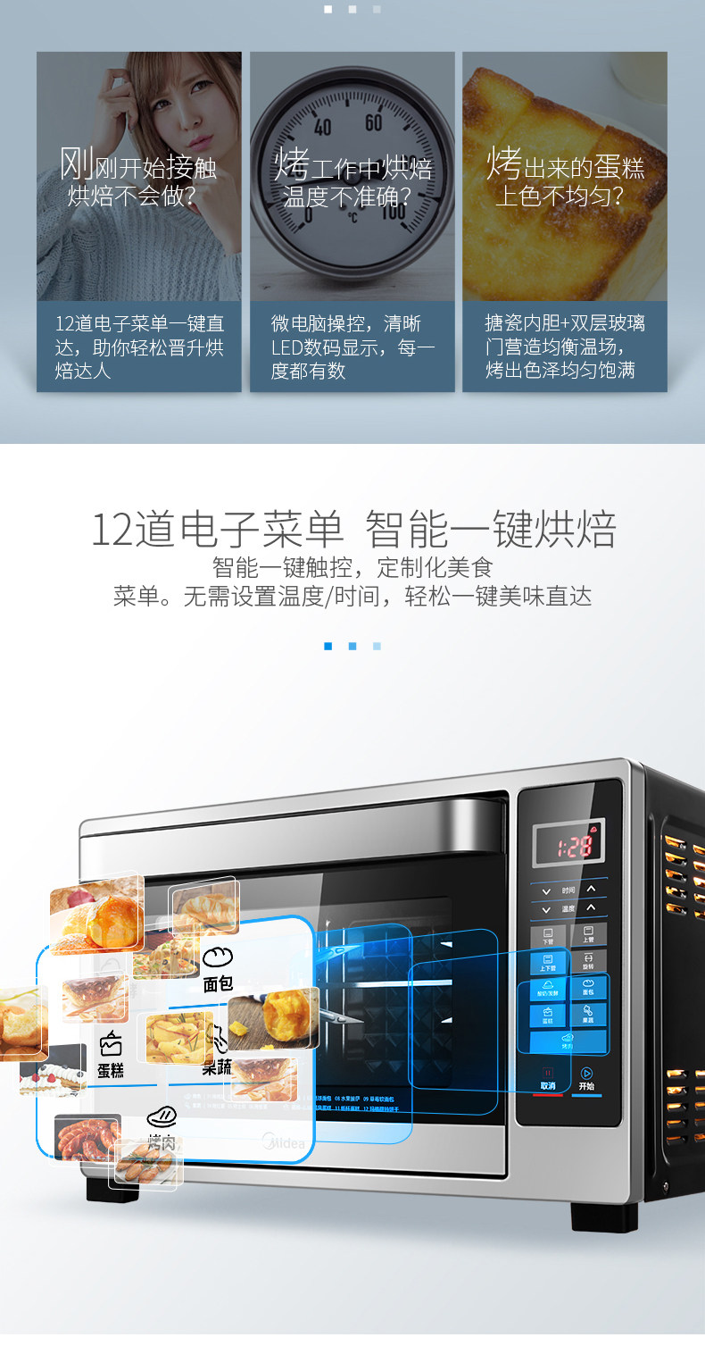Мидиа -духовка дома 32 -литровая ферментированная разрыв выпечки специальная интеллектуальная точность контроля температуры Эмаль электрическая печь 326f