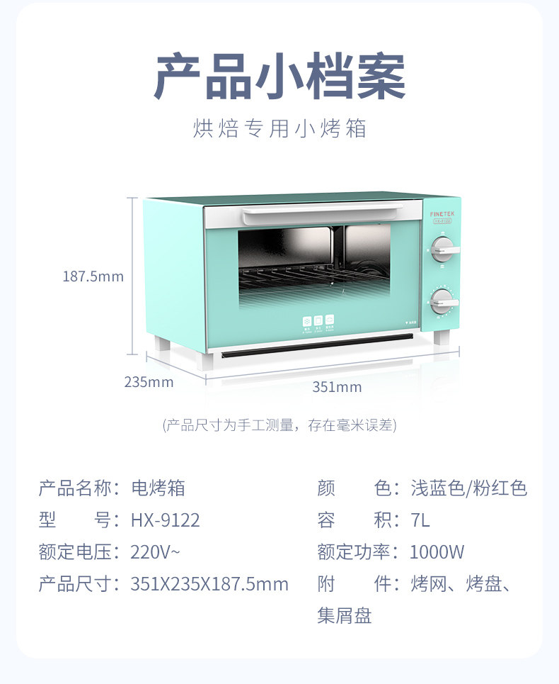 Finetek HX-9122 Умный верхний и нижний независимый теплый Mini 7L Маленькая печь полностью автоматическая профессиональная запеченная хлеб