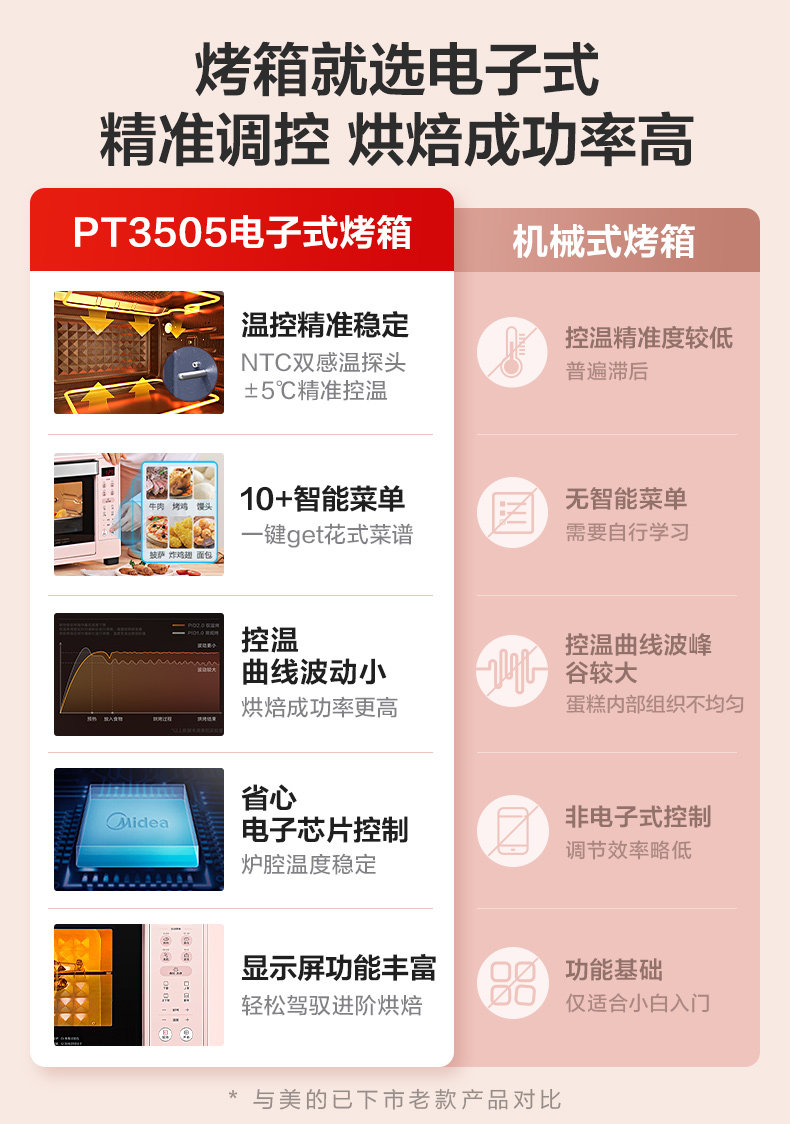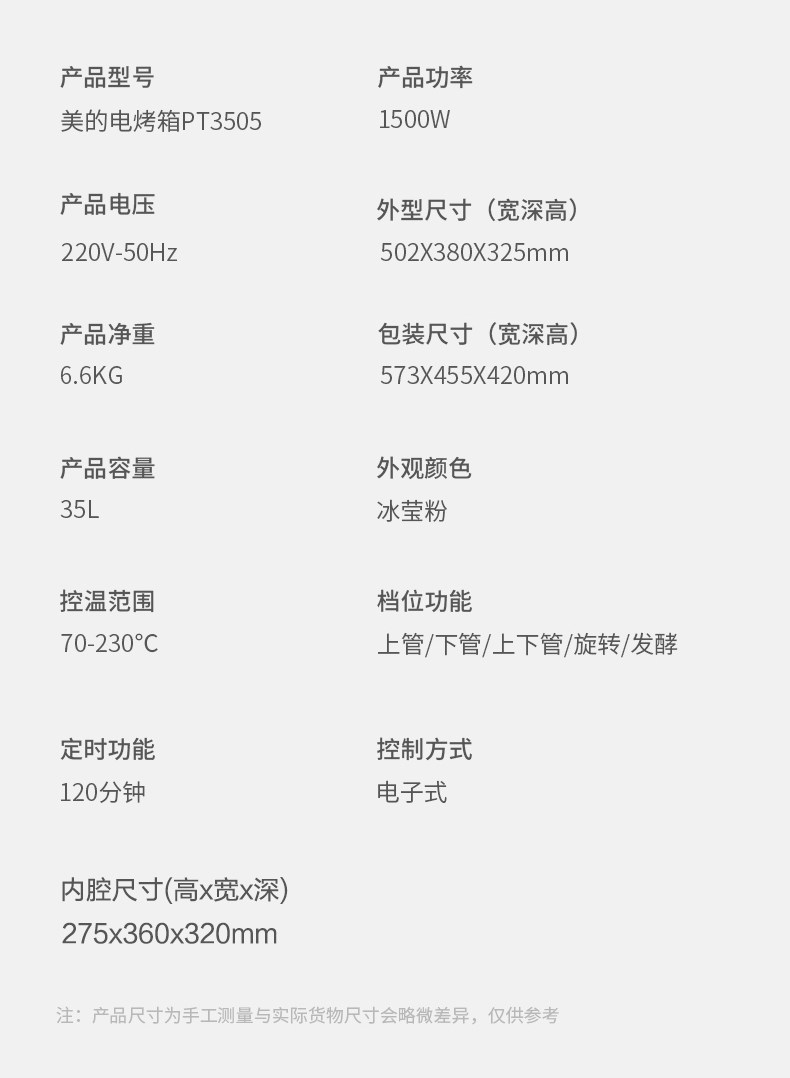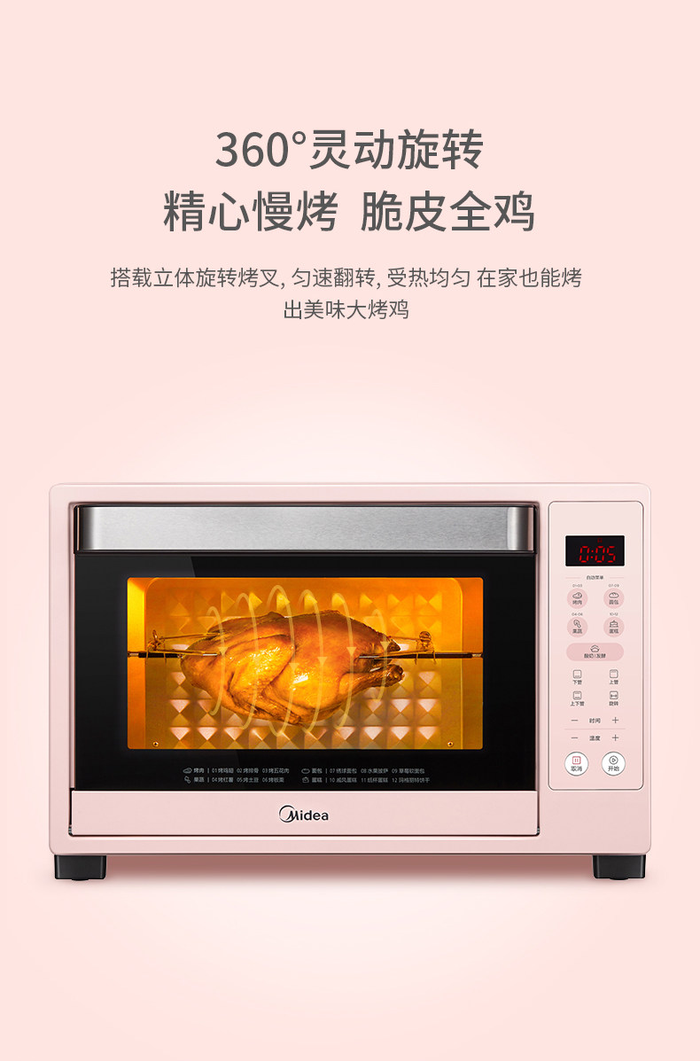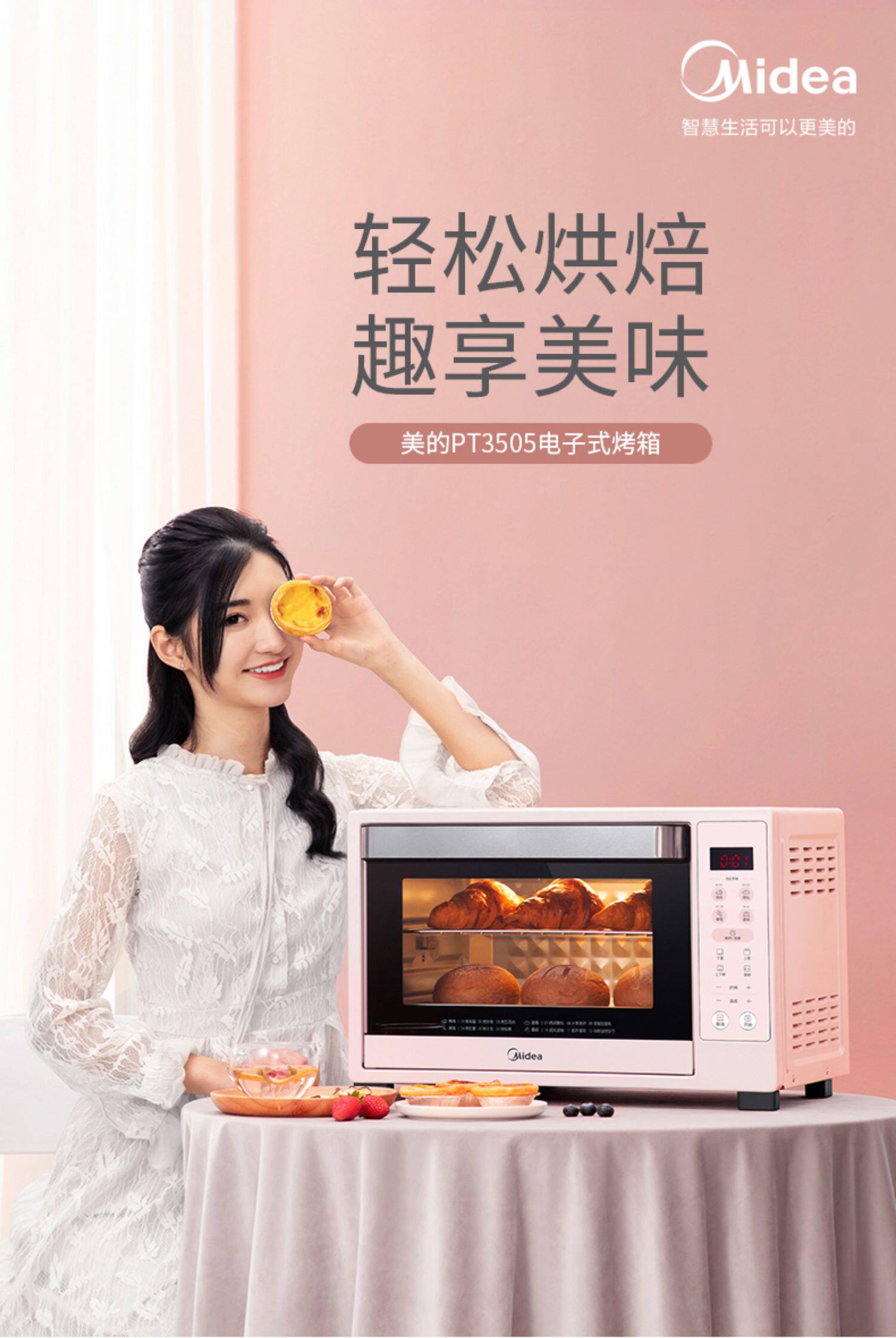 Midea Electric Poven Home Маленькая автоматическая выпекание много -функция 35L Большой пирог с пирогом Pt3505