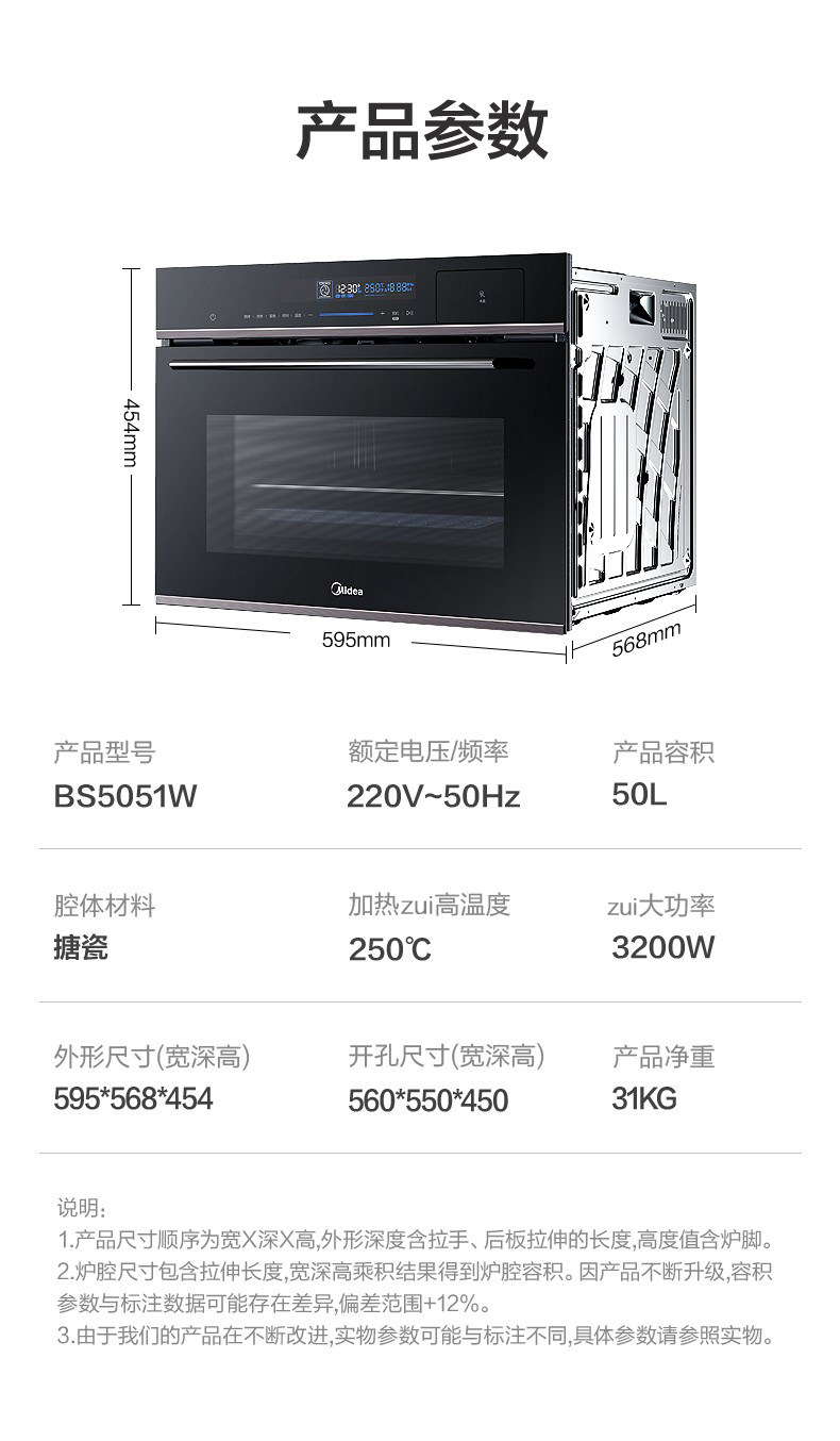 MIDEA BS5051W/5053W/505D0W Встроенный на пару на пару -в одном домохозяйственном электрическом органе BG3405W