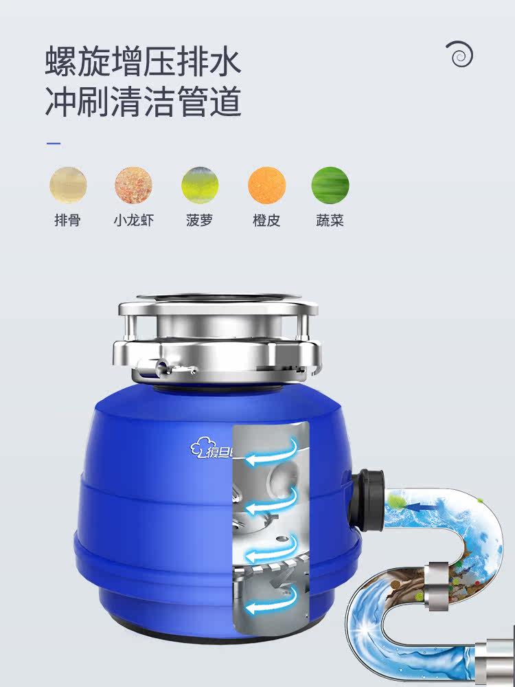 ① Автоматический вход воды: запустите процессор мусора в соответствии с переключателем, автоматически промывает воду внутри машины и автоматически выключает воду после выключения;