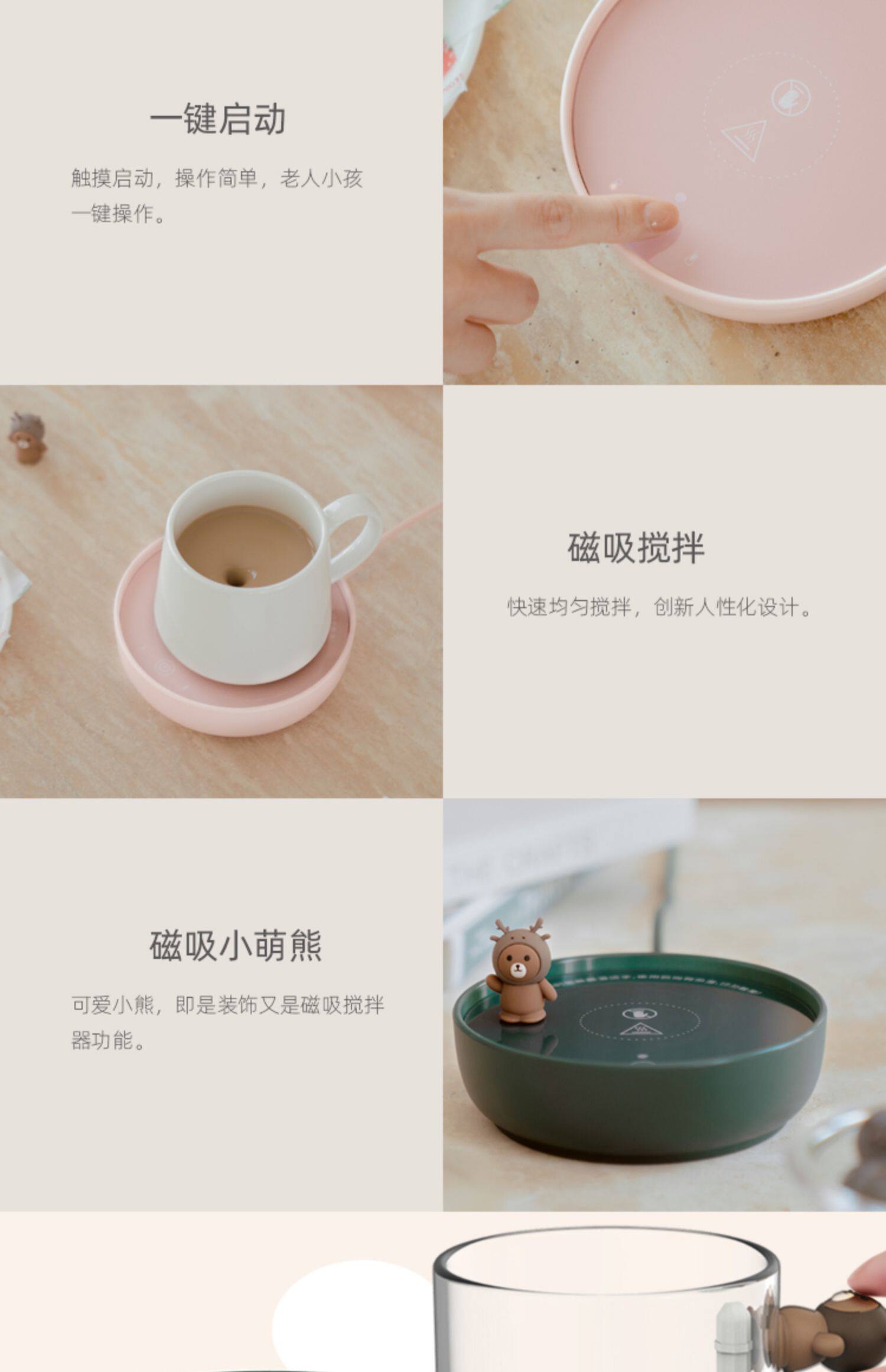 - Магнитная перемешивание теплой подушки [розовый]+керамическая чашка P.Bear