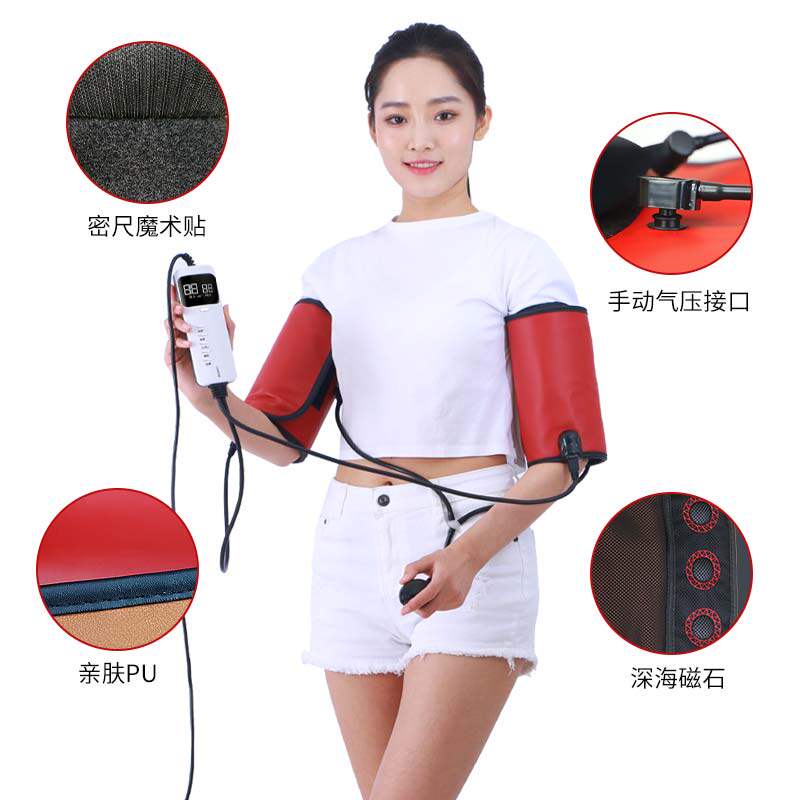 В середине красно -дальнего массажа воздушного волны, горячих компрессов тепловой вибрации, давления воздуха, боли в тонкой руке, терапии, нагрева красивого инструмента Arm