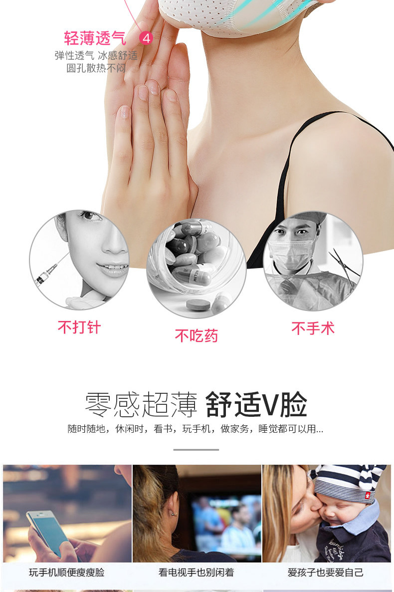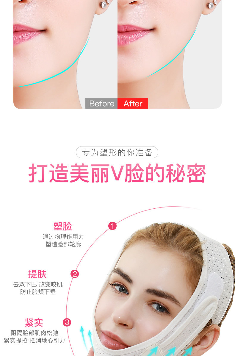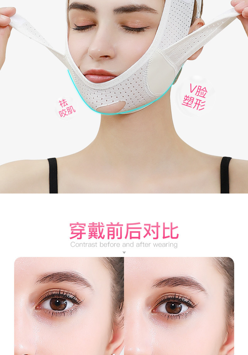 Ночная подтягивающая разглаживающая эластичная повязка для лица, поддерживающая маска, эффект "V-образного" лица, убирает второй подбородок