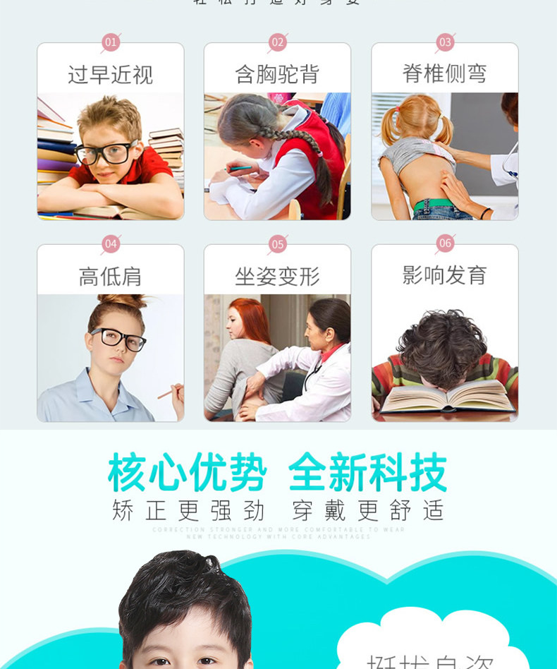 君来康 Корректор осанки, детские невидимые ортезы для школьников, подходит для подростков