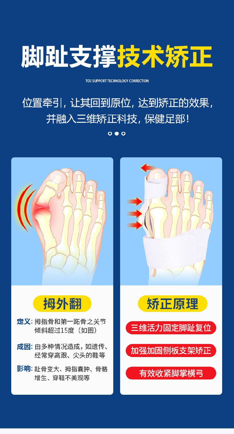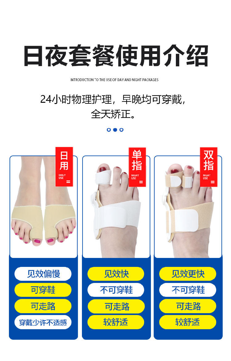 Большой палец корректируется, чтобы исправить большие ноги для ног, перекрывающиеся и коррекцию типа полиметра на носку днем и ночью