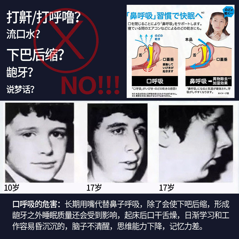 Дыхание японского рта пост исправляет взрослых детей, чтобы предотвратить напряжение и сон, храп, открытый рот, дышать, остановить рот, остановить губу,
